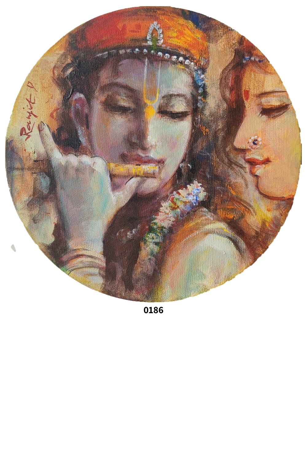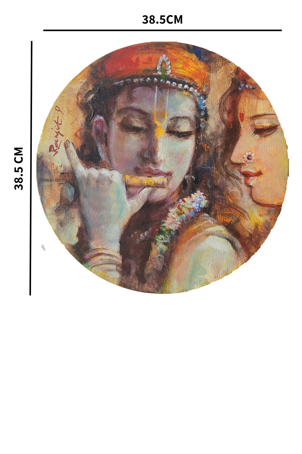 This oil painting, titled "Eternal Embrace: Radha Krishna," beautifully captures the divine love between Radha and Krishna. The artwork features: