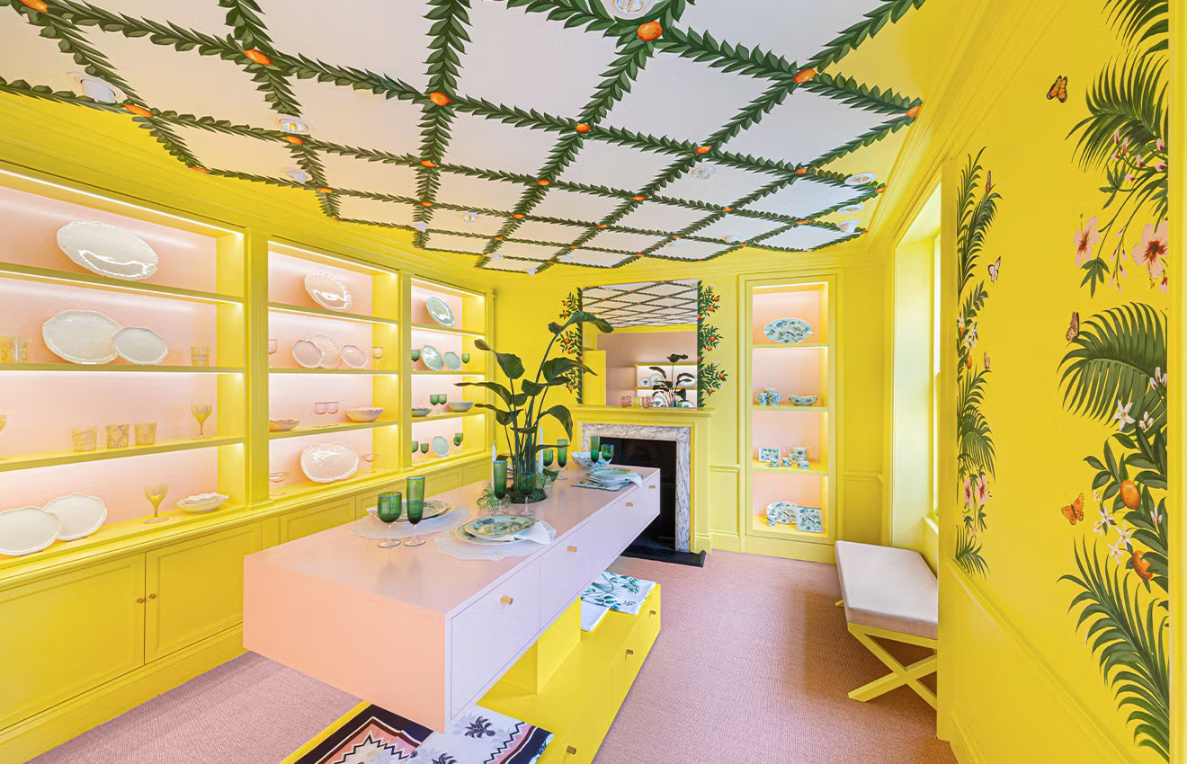 Vikkaso has brought a new level of sophistication to the three-floor Aquazzura London showroom with their exceptional artistry. Designed by the renowned Marie-Anne Oudejans, the space radiates elegance,it’s Vikkaso’s masterful execution that truly stands out. Each floor is a unique display of creativity, featuring stunning wall murals and intricate designs that perfectly complement Aquazzura’s luxurious footwear collection. The vibrant colors and detailed artwork elevate the showroom's ambiance, reflecting both the brand's flair for style and both's artistic innovation, making their contribution the highlight of this opulent space.