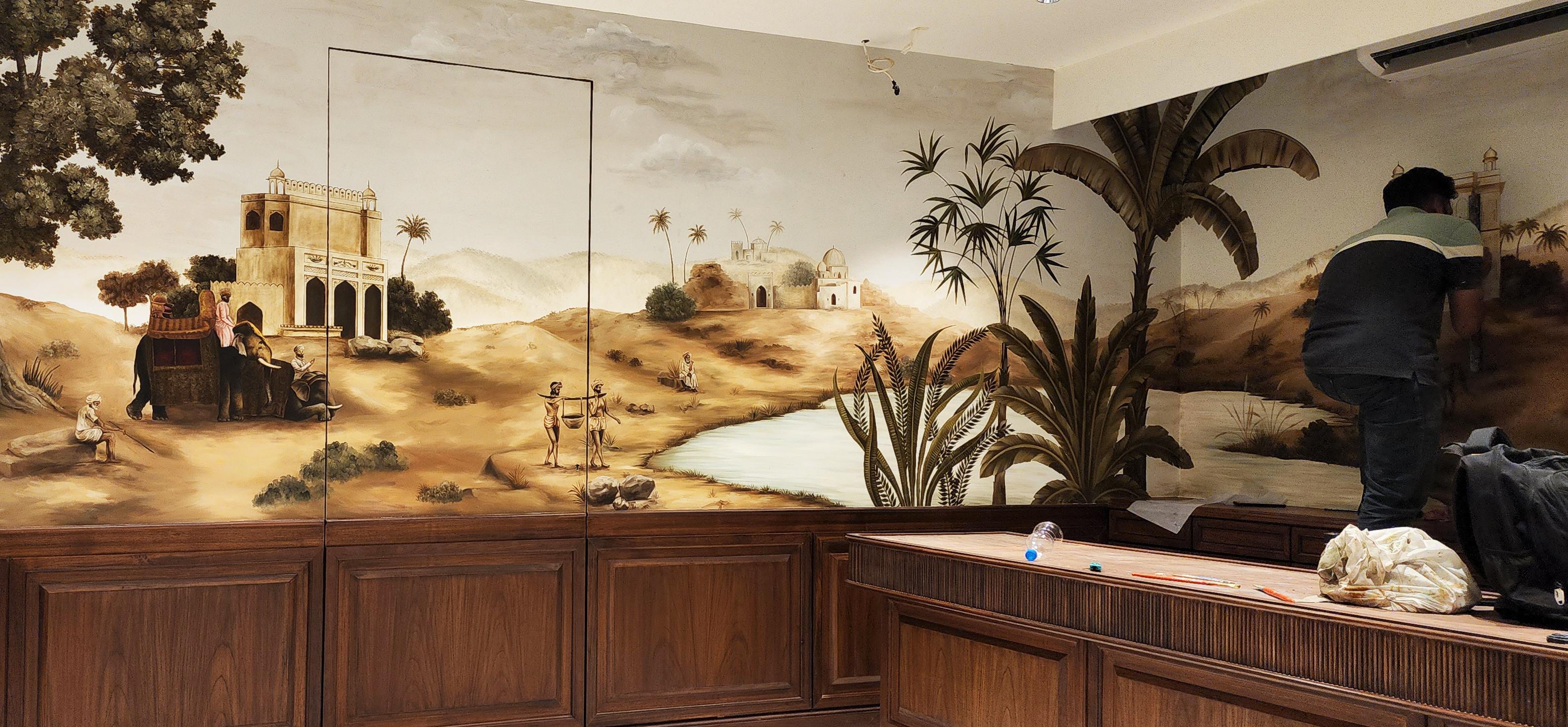 Vikkaso has transformed the interiors of Sambhav Jewels into a captivating blend of art and luxury. The walls, adorned with intricate murals and rich, vibrant colors, reflect the opulence and elegance of the jewelry on display. Each brushstroke by the team brings out the essence of timeless beauty, creating an enchanting atmosphere that enhances the shopping experience. This artistic collaboration perfectly aligns with the brand's commitment to sophistication and style.