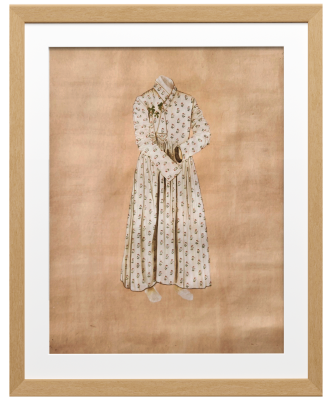 A hand-painted homage to traditional South Asian attire, rendered in original mineral colors with floral finesse