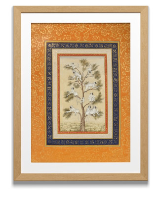 Jungle Mischief Miniature Painting captures the playful bond between a monkey and her baby in the heart of the wild.