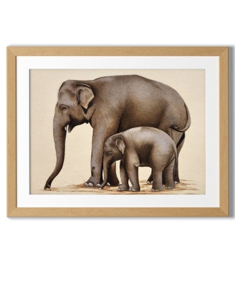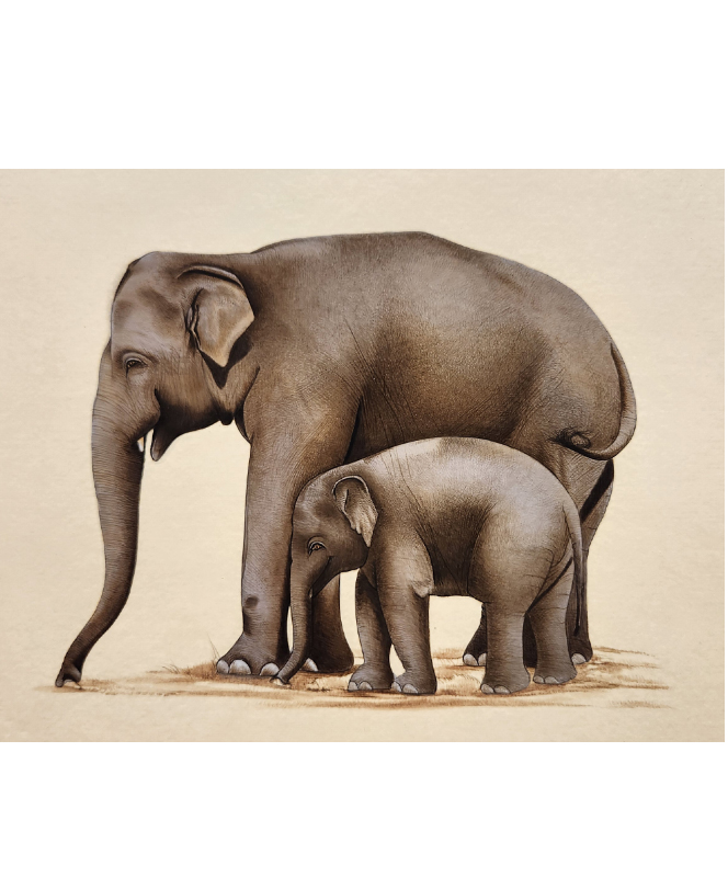 Elephant's Grace Miniature Painting captures the tender bond between a majestic elephant and its baby, symbolizing strength and affection.