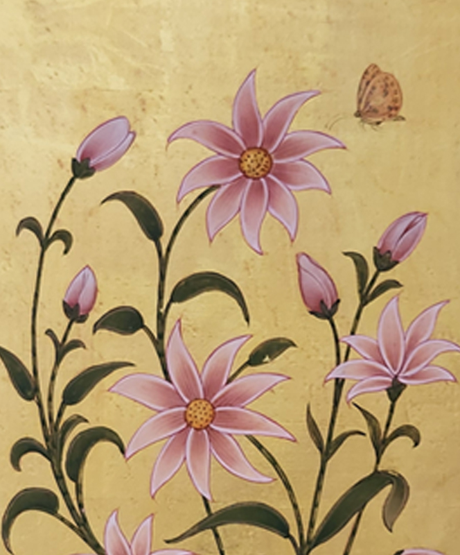 A Mughal miniature painting depicting a delicate flowering plant with butterflies, embodying the grace and intricacy of traditional Indian artistry.