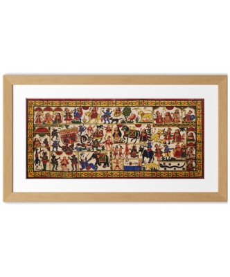 A panoramic silk composition capturing a royal procession in vibrant ceremonial splendor, hand-painted with original mineral pigments.