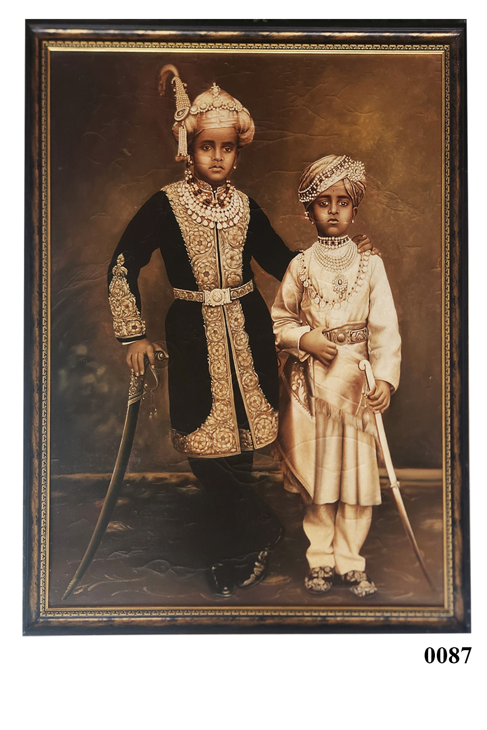 This exquisite oil painting captures the elegance and grandeur of two royal heirs, their expressions embodying the strength and wisdom of their lineage. Set against a background that highlights their noble heritage, this piece is a perfect blend of classical artistry and timeless elegance. Ideal for enhancing the beauty of any royal-themed interior, this painting offers a glimpse into the royal family’s legacy, making it a stunning addition to any art collection.