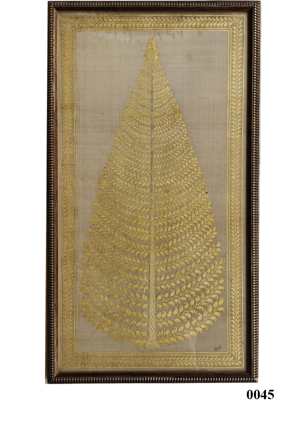 Detailed, repetitive leaf patterns that create a sense of harmony and balance.