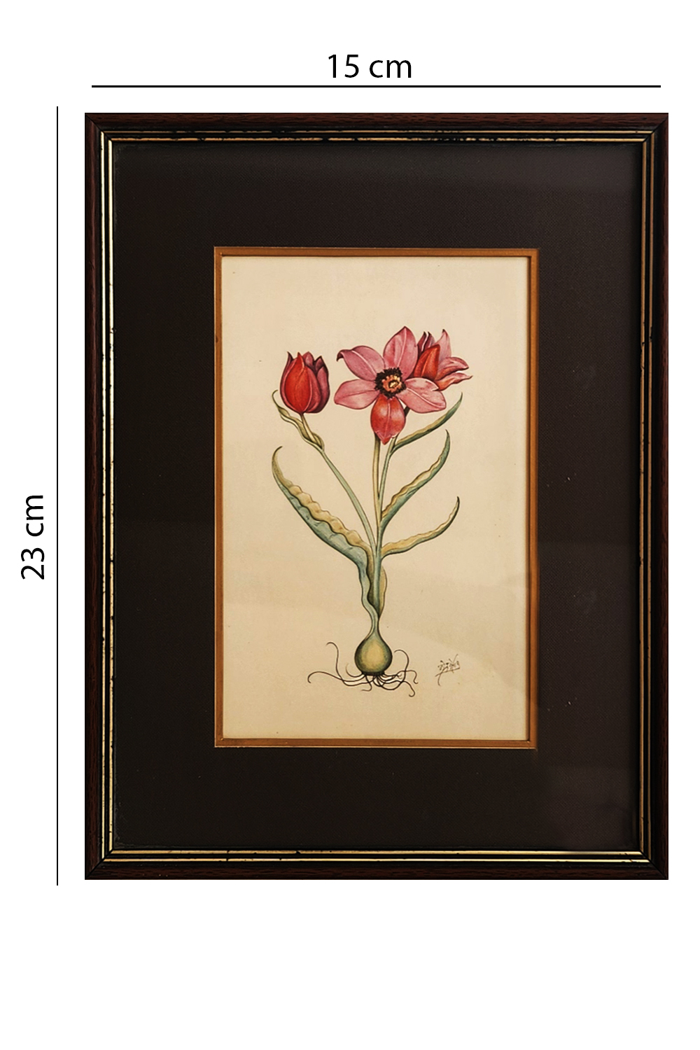 This exquisite miniature painting features a detailed botanical illustration of tulips. The painting includes: