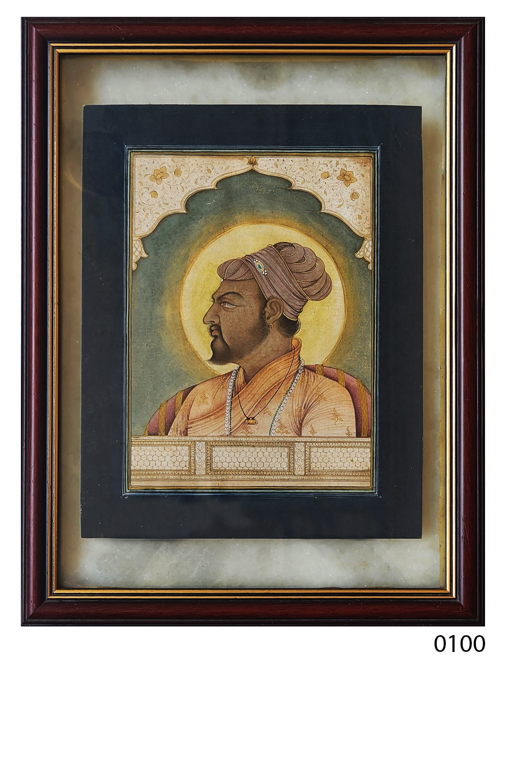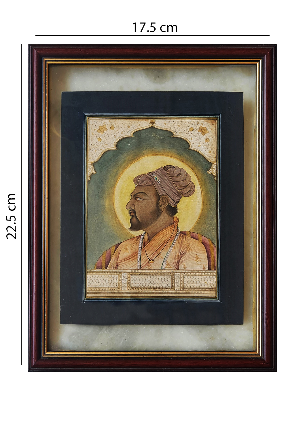 This exquisite miniature painting captures the essence of nobility and grandeur. The artwork features: