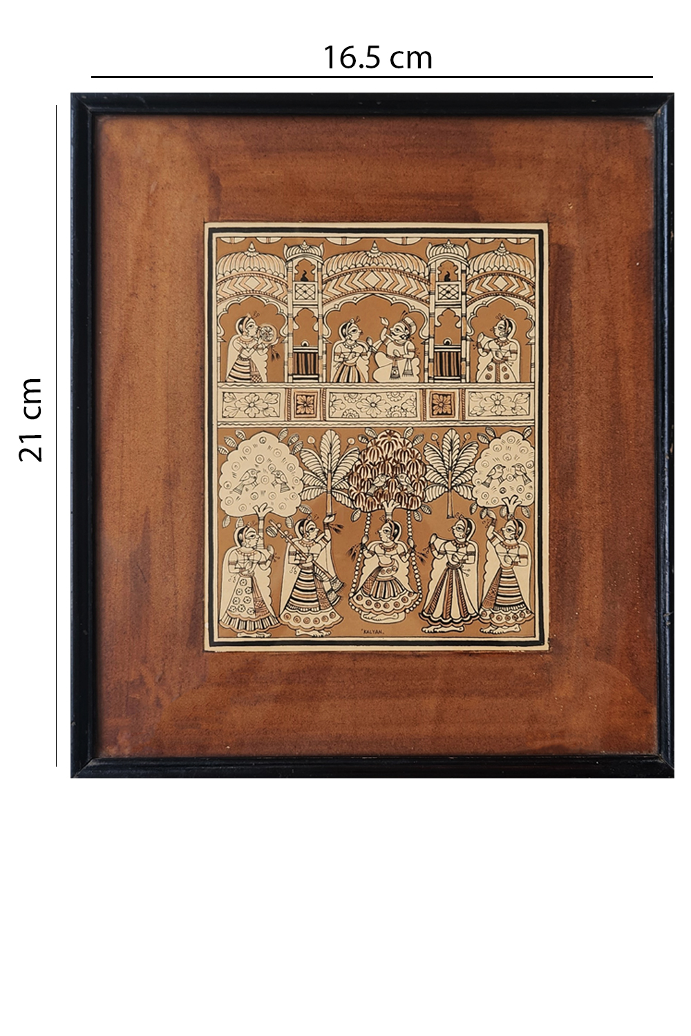 This painting showcases a traditional Indian celebration with a royal theme, featuring: