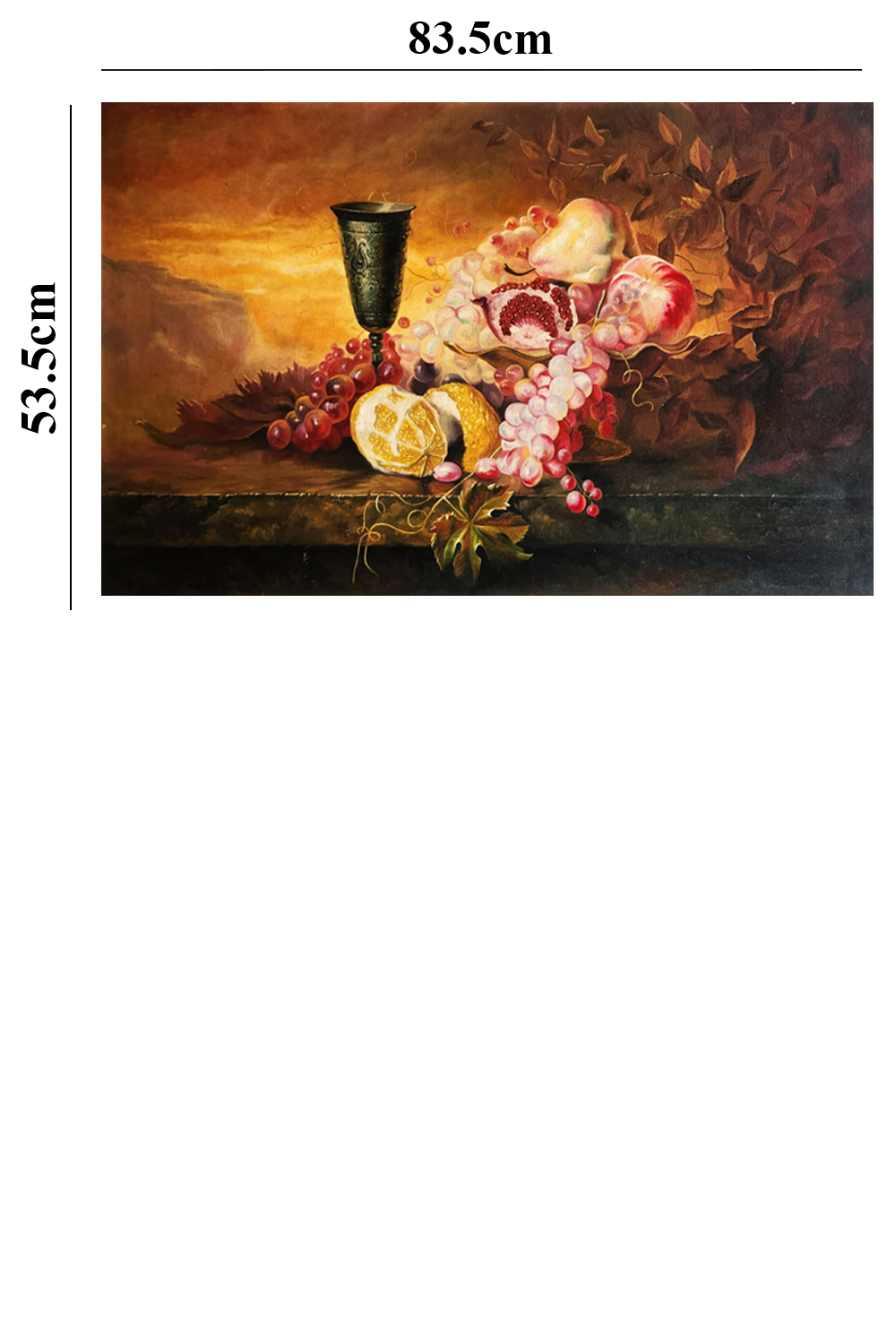 A decorative, ornate goblet standing prominently among the fruits.