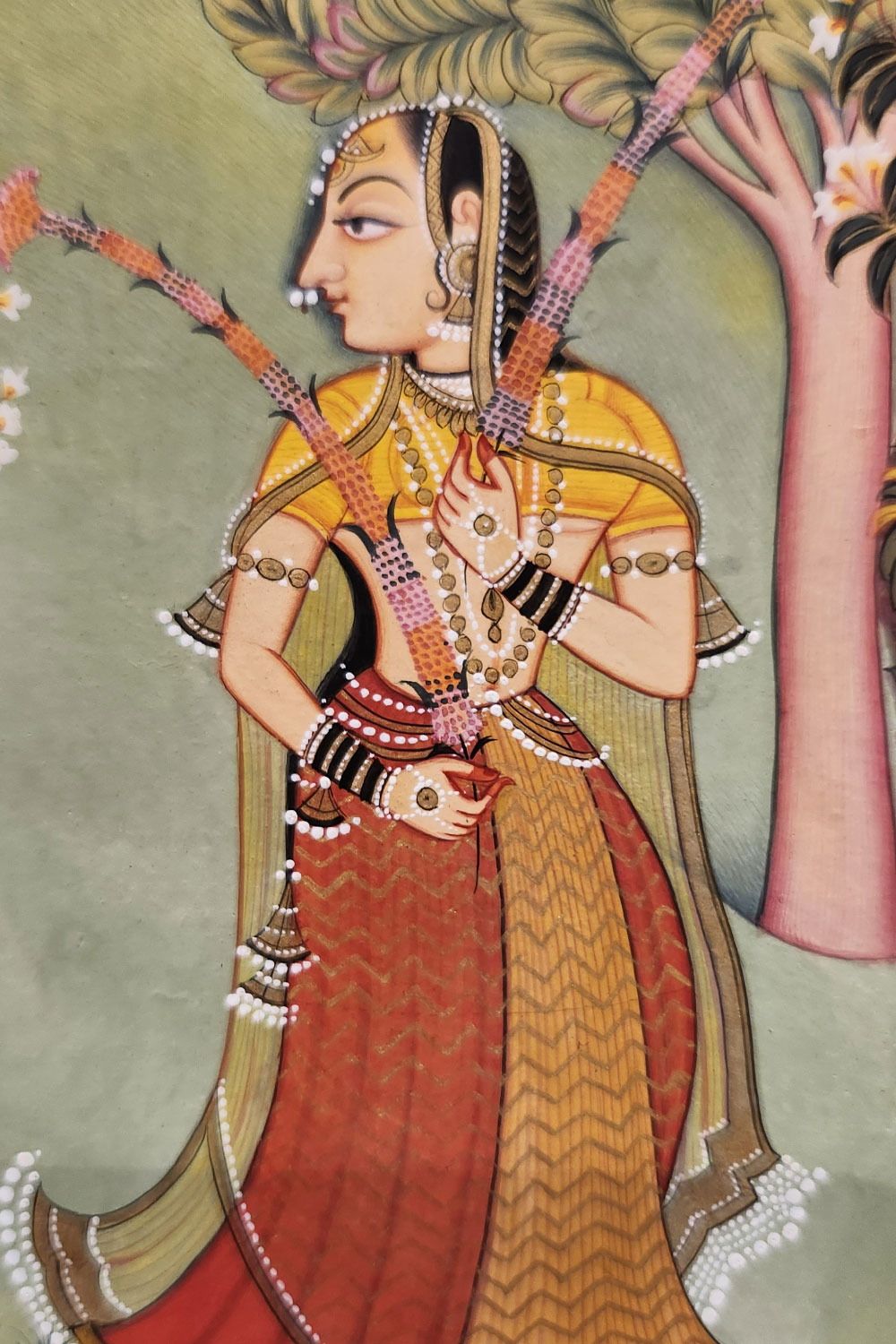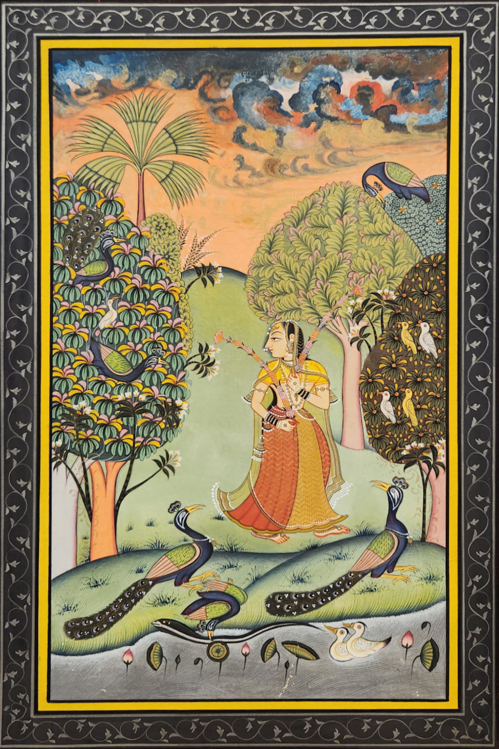 Product Content: Elevate your space with the Queen’s Verdant Realm Miniature Painting. This exquisite artwork depicts a queen surrounded by vibrant greenery and gentle animals, blending regal sophistication with the tranquility of nature. Handcrafted with meticulous attention to detail, this painting brings a touch of elegance and serenity to any room. Ideal for collectors and art enthusiasts, it adds a refined and captivating presence to both traditional and contemporary interiors.
