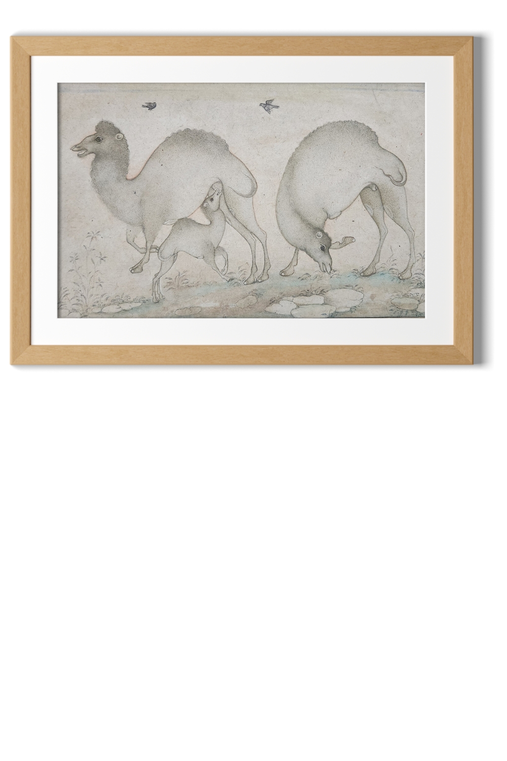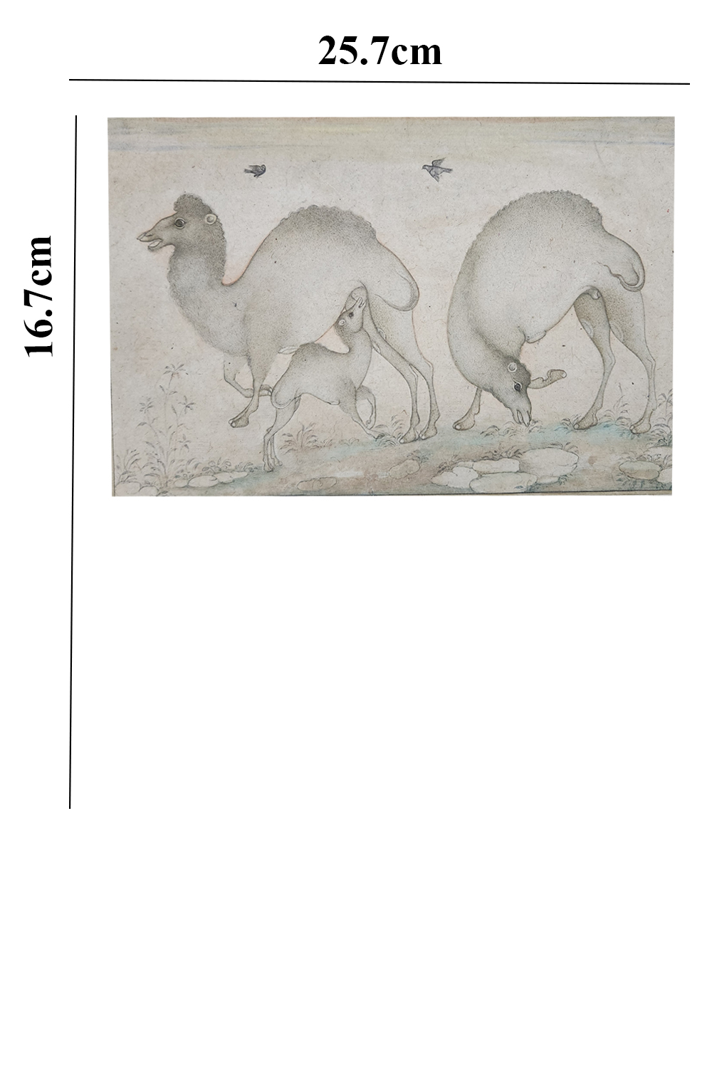Product Content in Details: The Camels’ Tranquil Moment is an exquisite example of traditional Indian miniature art, celebrated for its intricate brushwork and naturalistic portrayal. This painting beautifully illustrates two camels in an idyllic setting. The first camel is shown in a calm posture, drinking from a stream, while the second stands upright, exuding a sense of vigilance and grace. The artist’s attention to detail is evident in the depiction of their textured fur, lifelike postures, and expressive features.