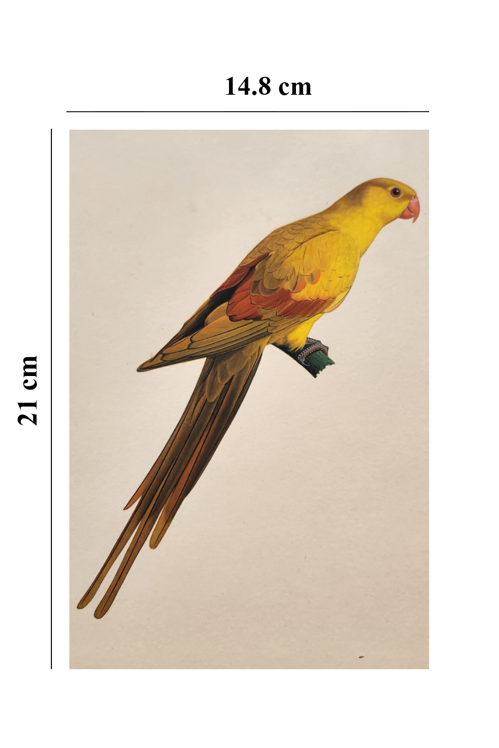 The Golden Perch Miniature Painting beautifully captures the allure of a yellow-greenish parrot perched in all its glory. Hand-painted with meticulous attention to detail, this artwork brings vibrant color and life to your space. The combination of yellow and green hues creates a striking visual impact, making it an eye-catching addition to any room. Its vertical orientation is perfect for narrow wall spaces, while the high-quality art paper ensures a lasting, premium finish. The lightweight design makes it easy to frame and display, adding a touch of natural elegance to your decor. Please note that the frame is not included in the price but is available upon request for an additional charge.