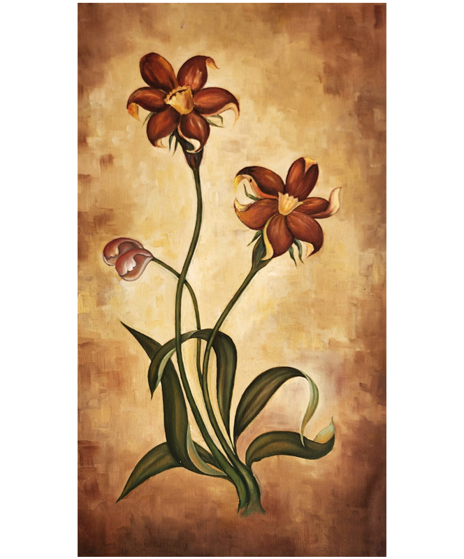 Two blossoms rise from the soil’s warmth, their petals echoing the quiet rhythm of nature’s palette.