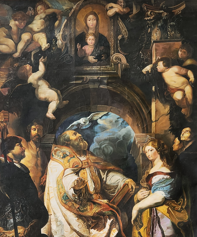 An exquisite portrayal of St. Gregory the Great with saints, capturing the divine serenity of the holy gathering.