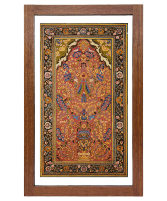 A symphony of floral and geometric motifs unfolds across a crimson field, echoing the grandeur of Persian tapestry traditions.