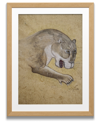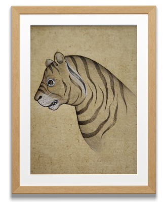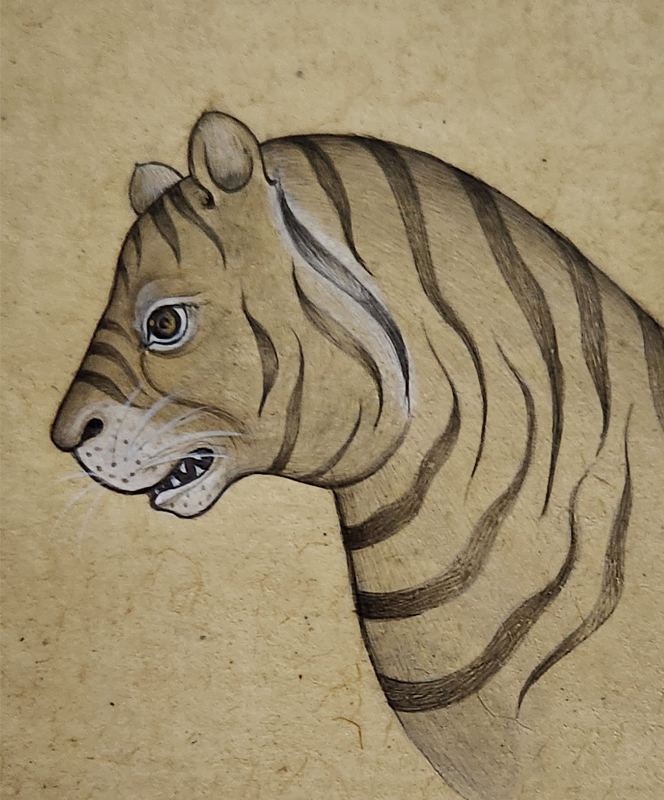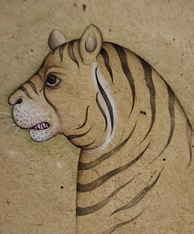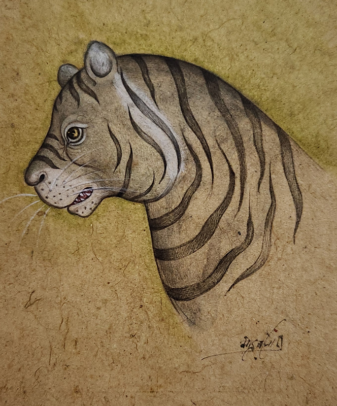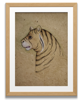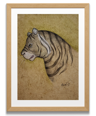 This traditional miniature painting showcases the profile of a majestic tiger, beautifully capturing its strength and grace.