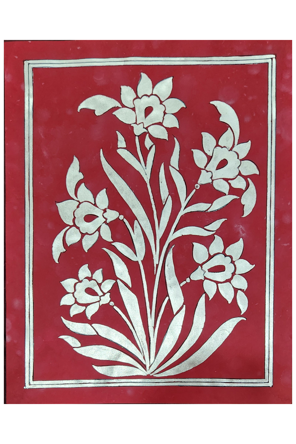 Care Instructions: To preserve the vivid colors and intricate details of your Crimson Silver Paper Painting, keep it away from direct sunlight and dust it gently with a soft cloth.