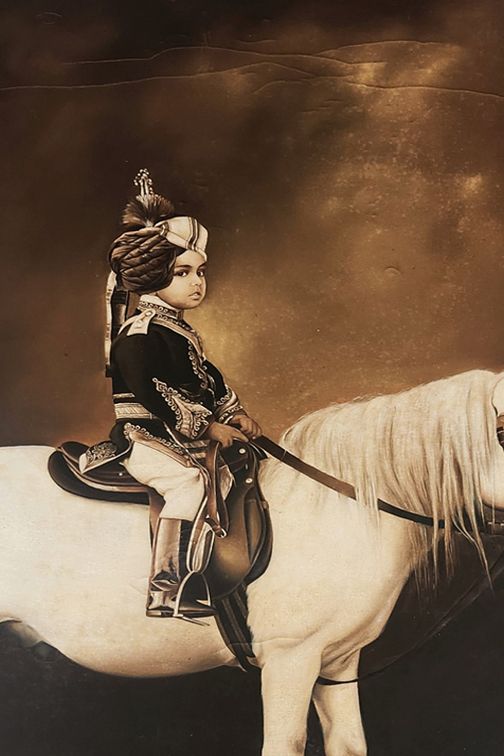- Depicts a royal scene with a king’s son on horseback