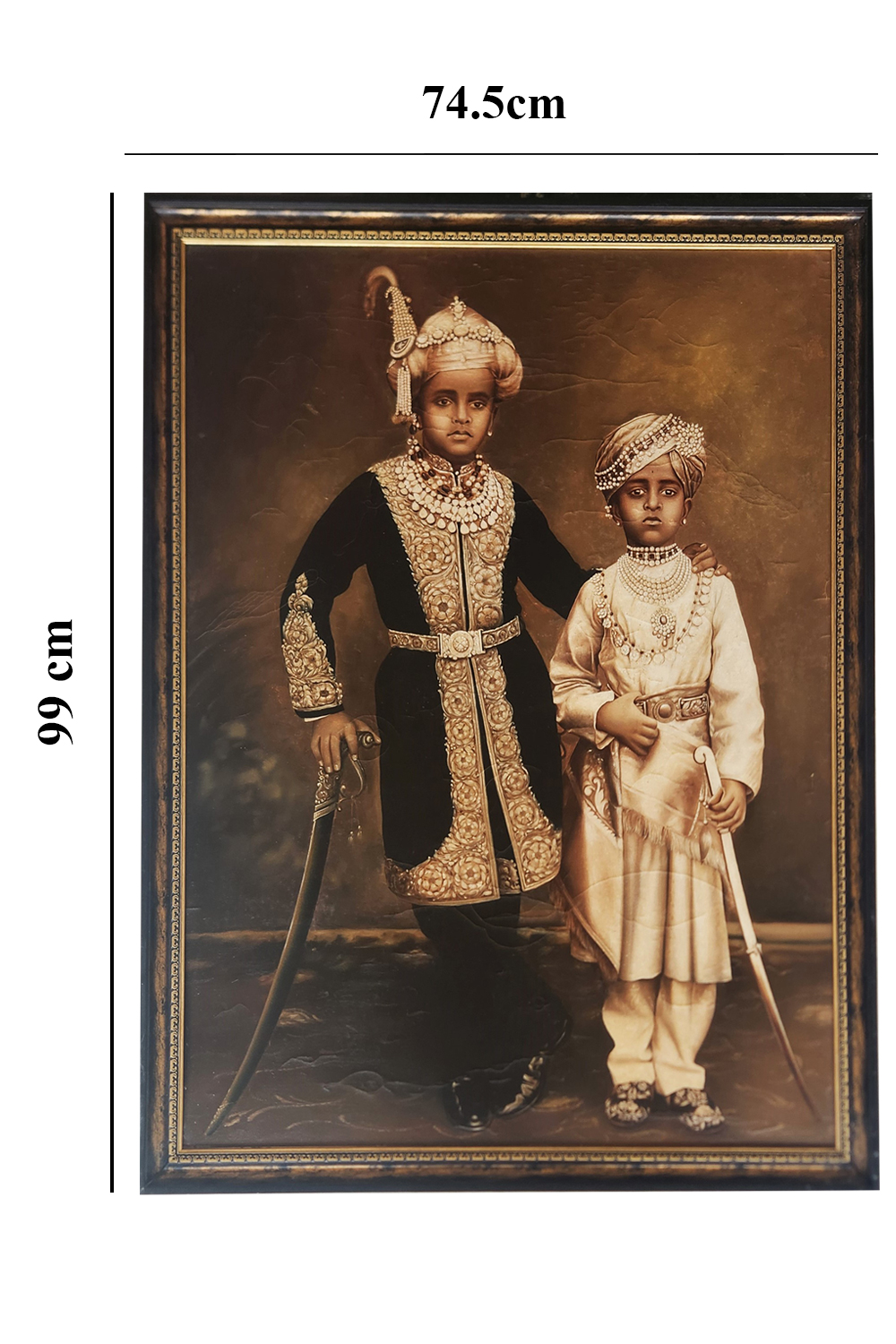 This exquisite oil painting captures the elegance and grandeur of two royal heirs, their expressions embodying the strength and wisdom of their lineage. Set against a background that highlights their noble heritage, this piece is a perfect blend of classical artistry and timeless elegance. Ideal for enhancing the beauty of any royal-themed interior, this painting offers a glimpse into the royal family’s legacy, making it a stunning addition to any art collection.