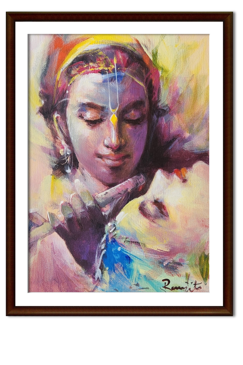 An exquisite oil painting capturing the eternal bond of love and devotion between Radha and Krishna.