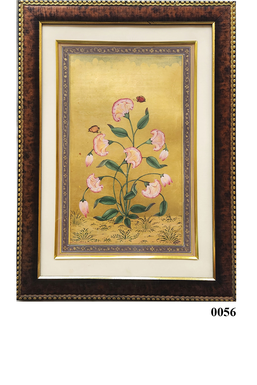 This exquisite Mughal miniature painting, titled "Blossoms of Serenity," showcases the elegance and intricacy of traditional Mughal art. The painting features:
