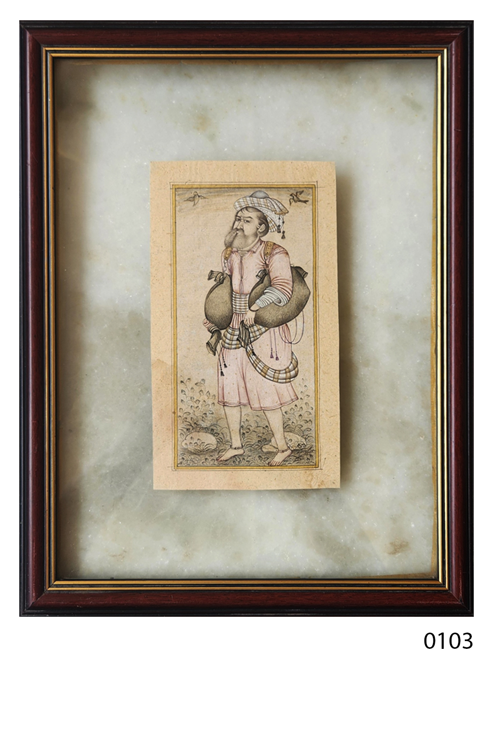 A gold-bordered frame that enhances the painting's elegance and historical charm.