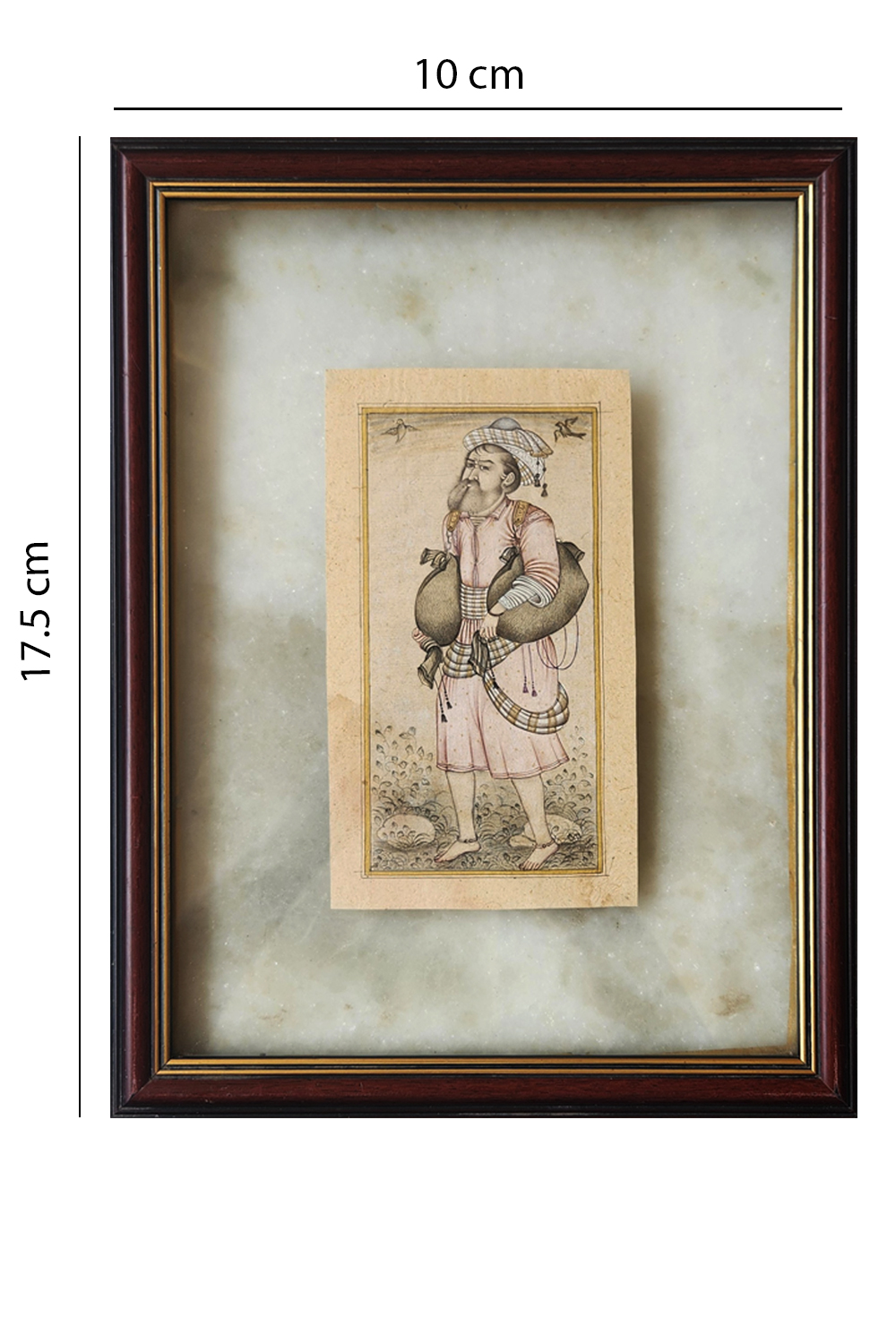 This exquisite miniature painting captures a traditional bagpiper dressed in historical attire, showcasing intricate details and vibrant colors. The painting features:
