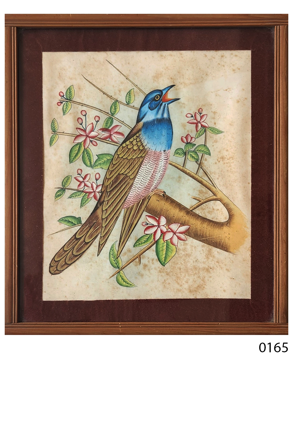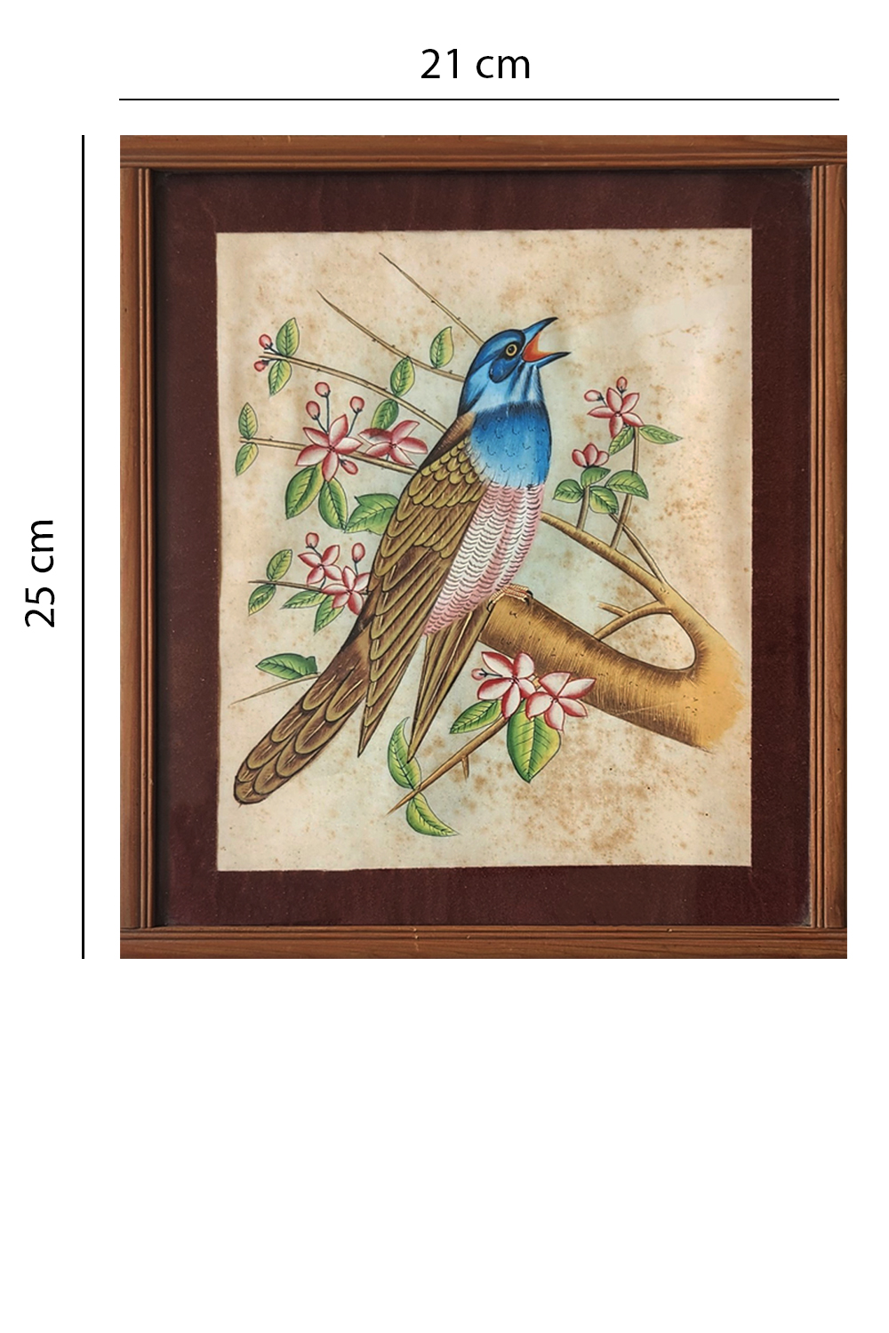 This painting captures the essence of nature with a beautifully detailed bluebird as the focal point. The bird is perched on a branch, singing joyfully amidst a backdrop of blooming flowers and lush green leaves. The artwork is characterized by: