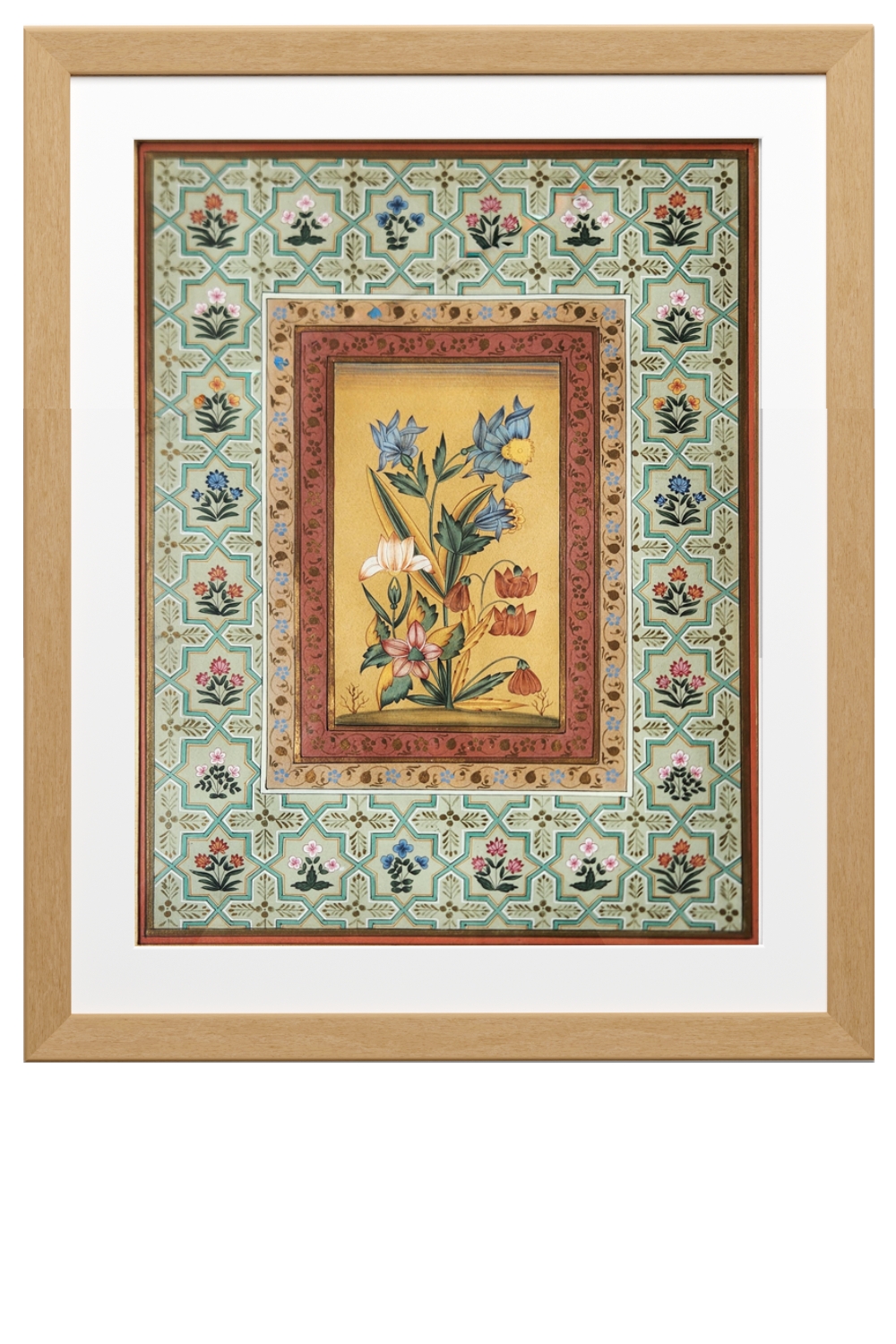 A harmonious blend of colors and patterns that reflect the intricate craftsmanship and aesthetic sensibilities of miniature painting traditions.