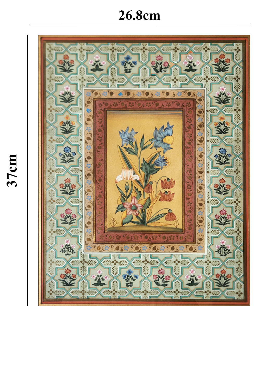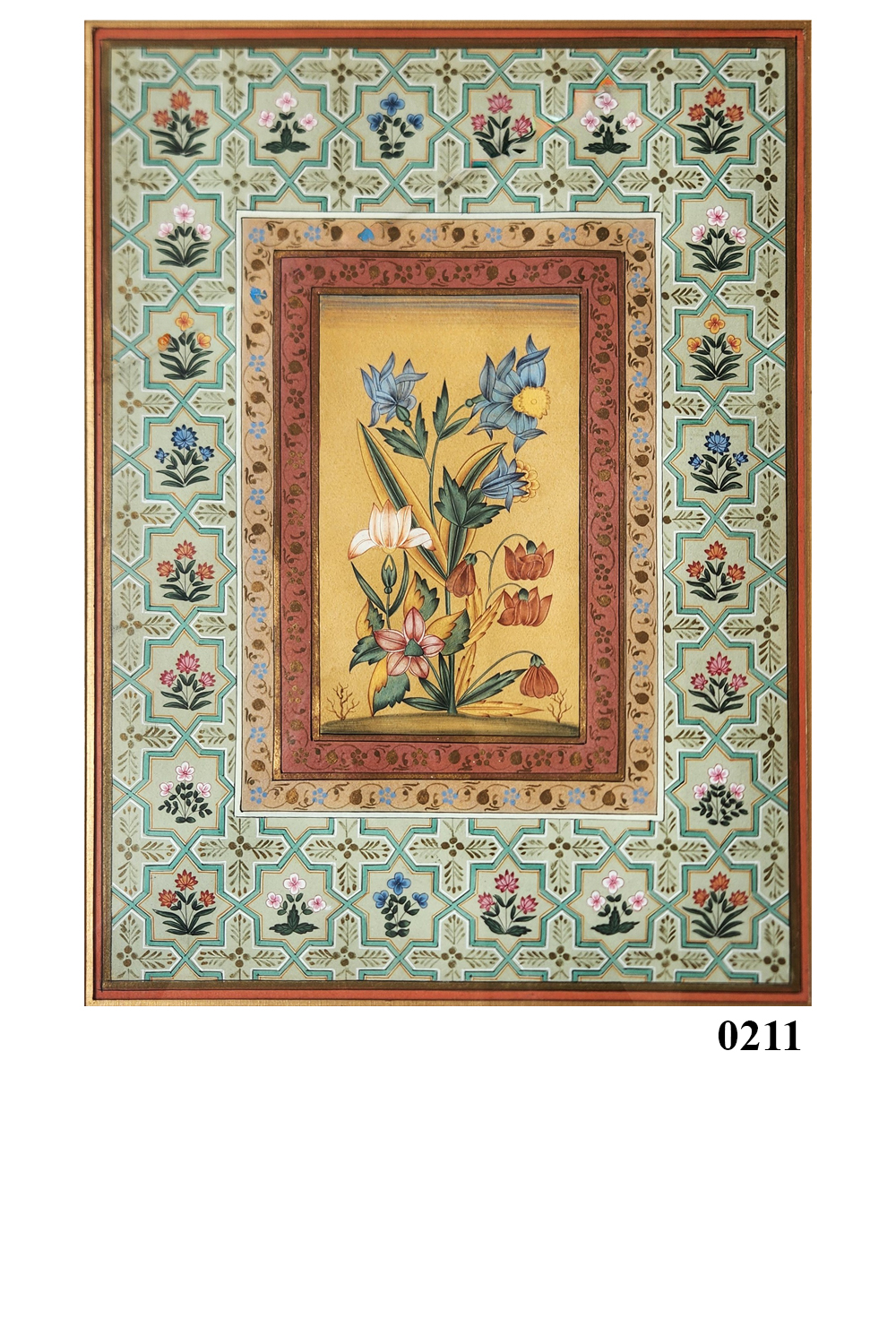 "Floral Harmony" is a captivating miniature painting that exemplifies the delicate artistry of traditional floral compositions. The painting features: