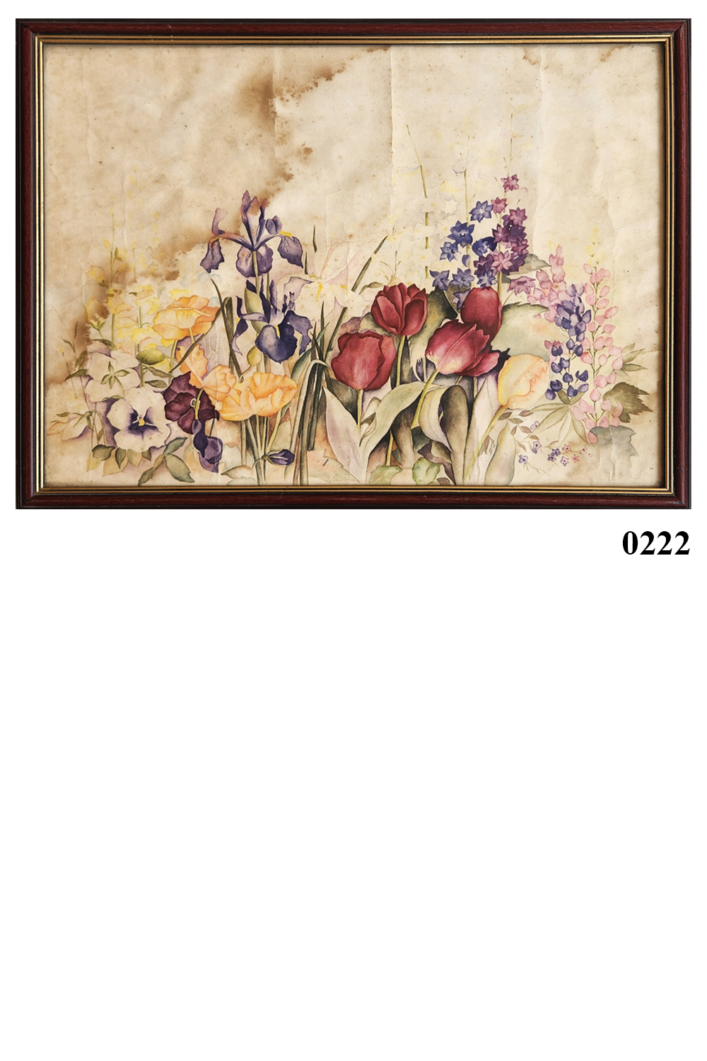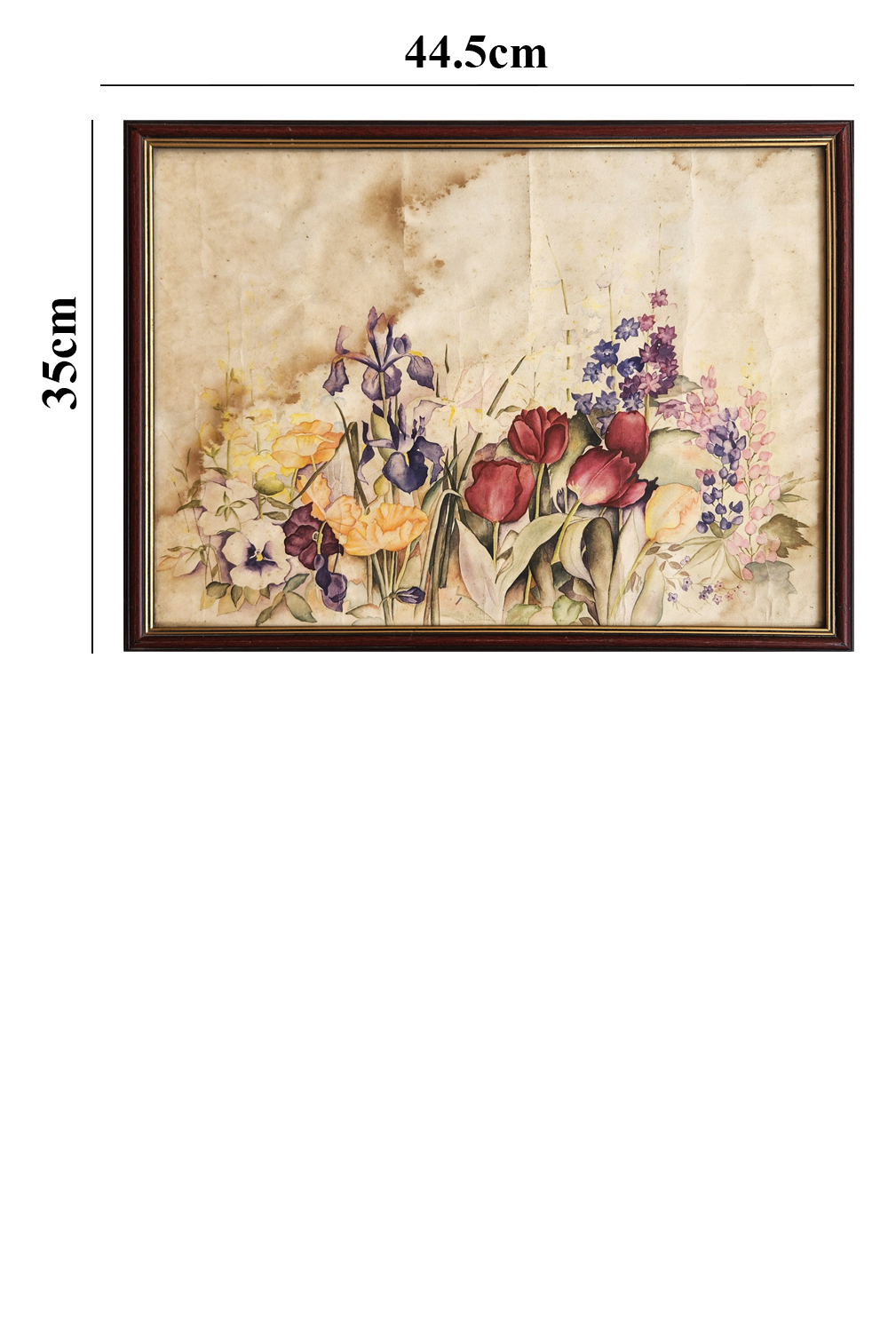 This watercolor painting, titled "Springtime Symphony," captures the essence of a blooming garden in spring. The artwork features: