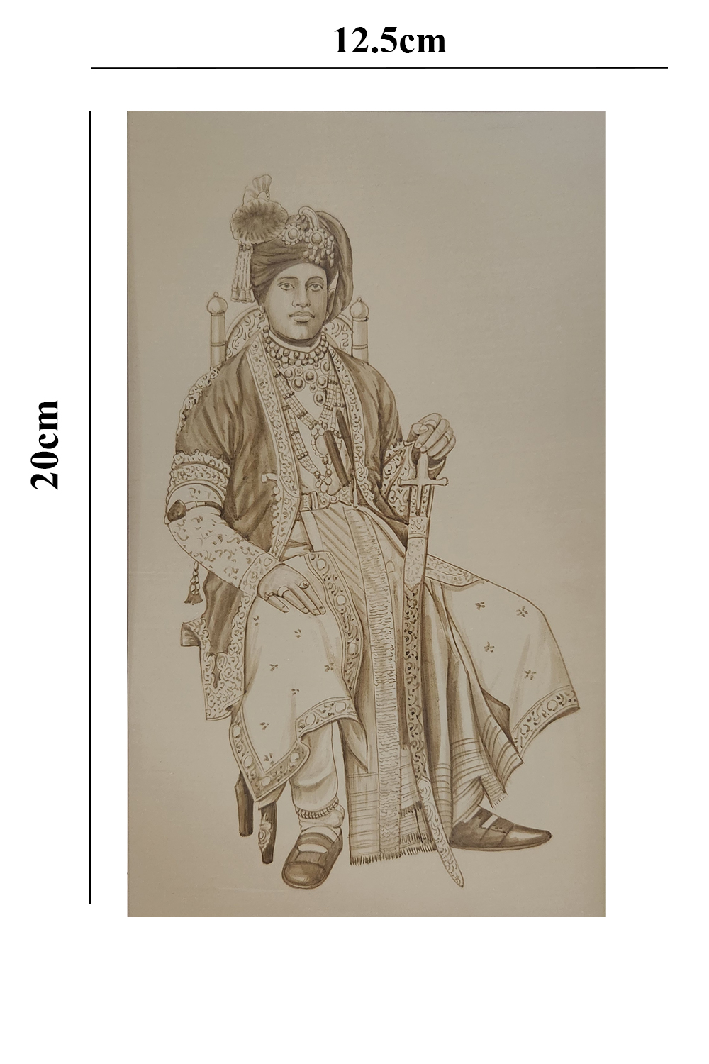 This sepia tone artwork captures the essence of regal splendor and historical significance. The painting features: