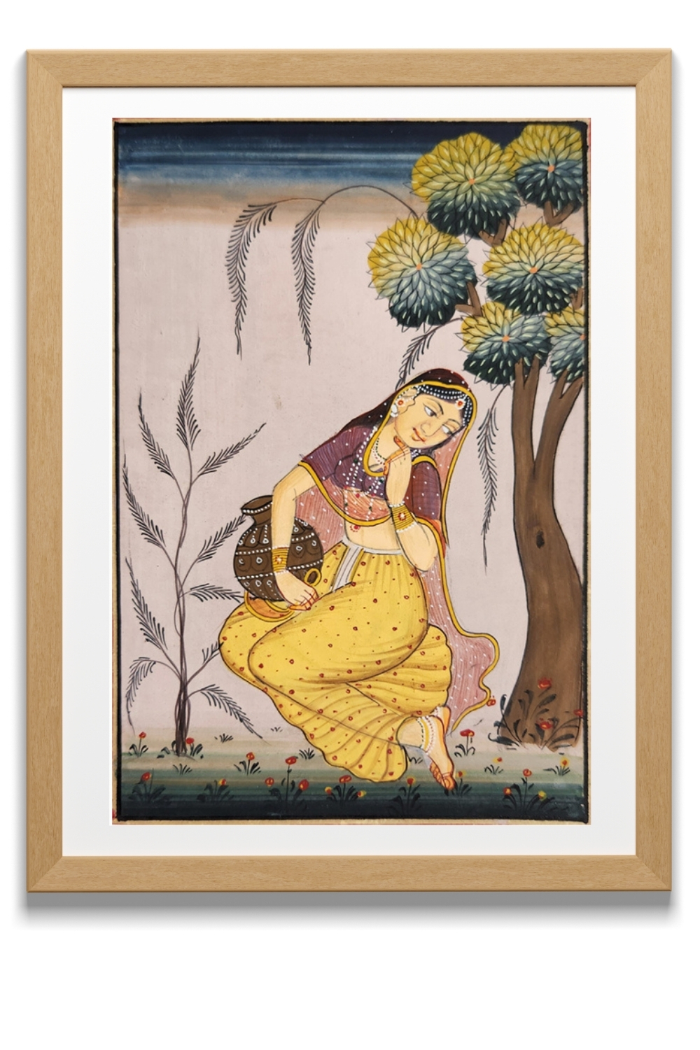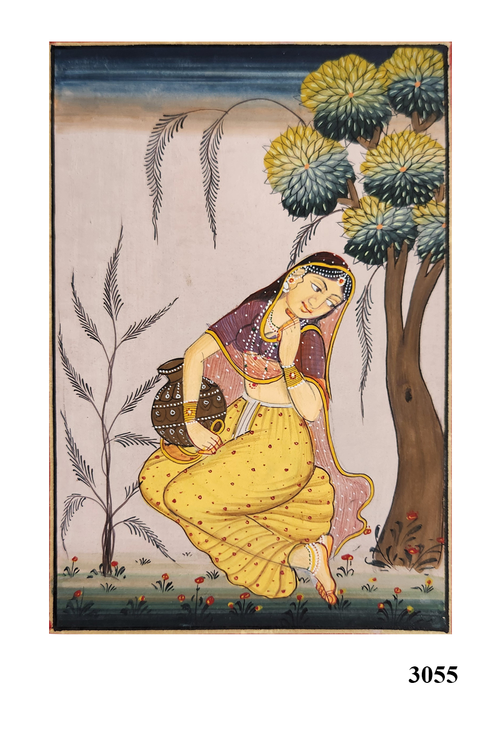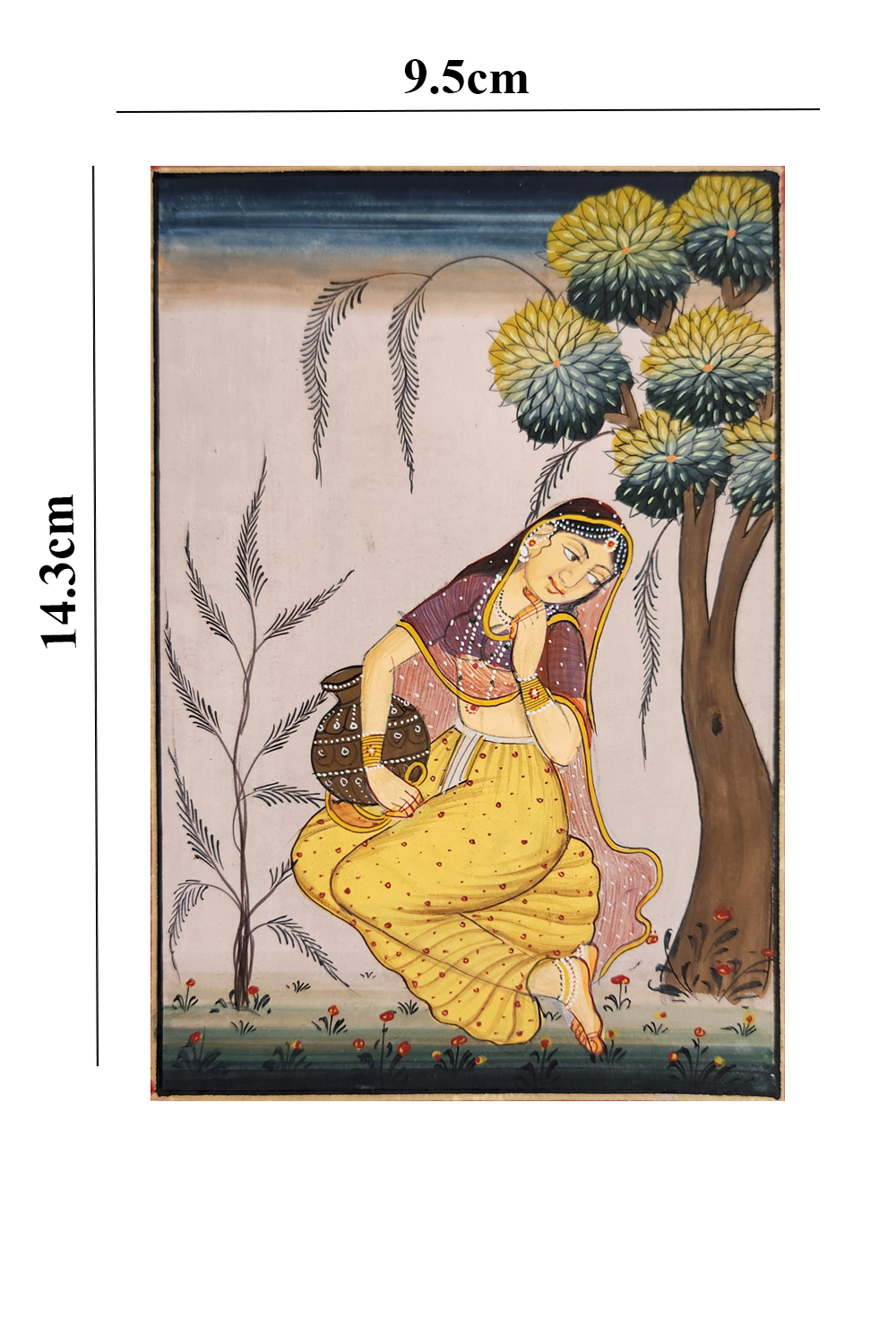 This exquisite miniature painting captures the essence of traditional Indian art with its intricate details and vibrant colors. The painting features: