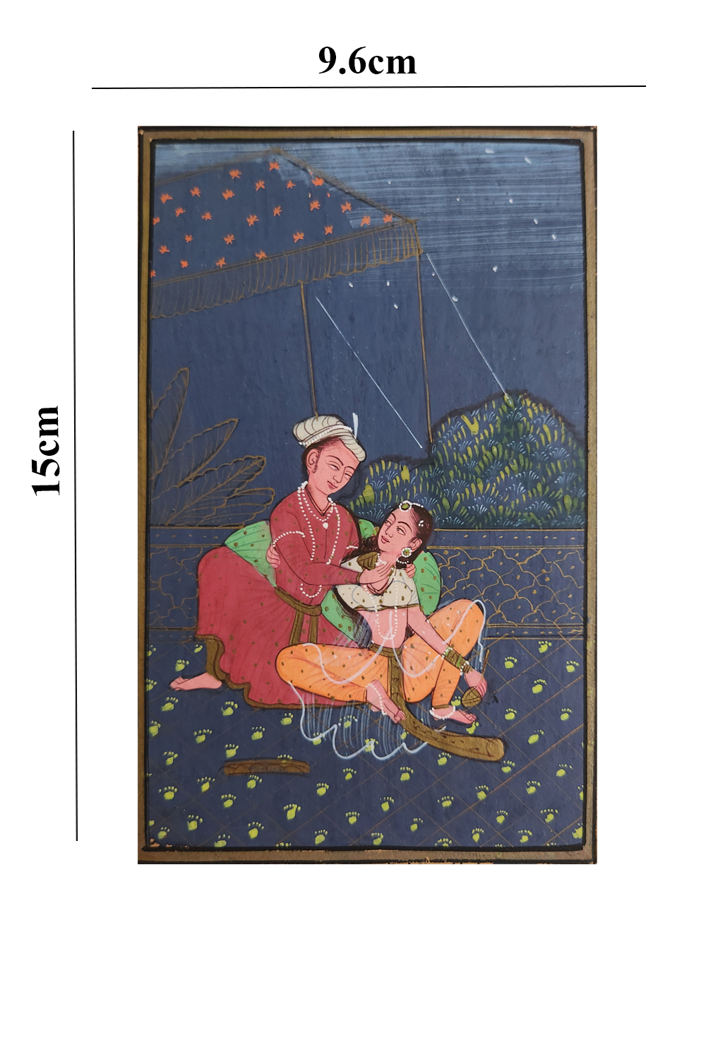 Colors and Patterns: Use of vibrant colors and intricate patterns typical of traditional miniature paintings.