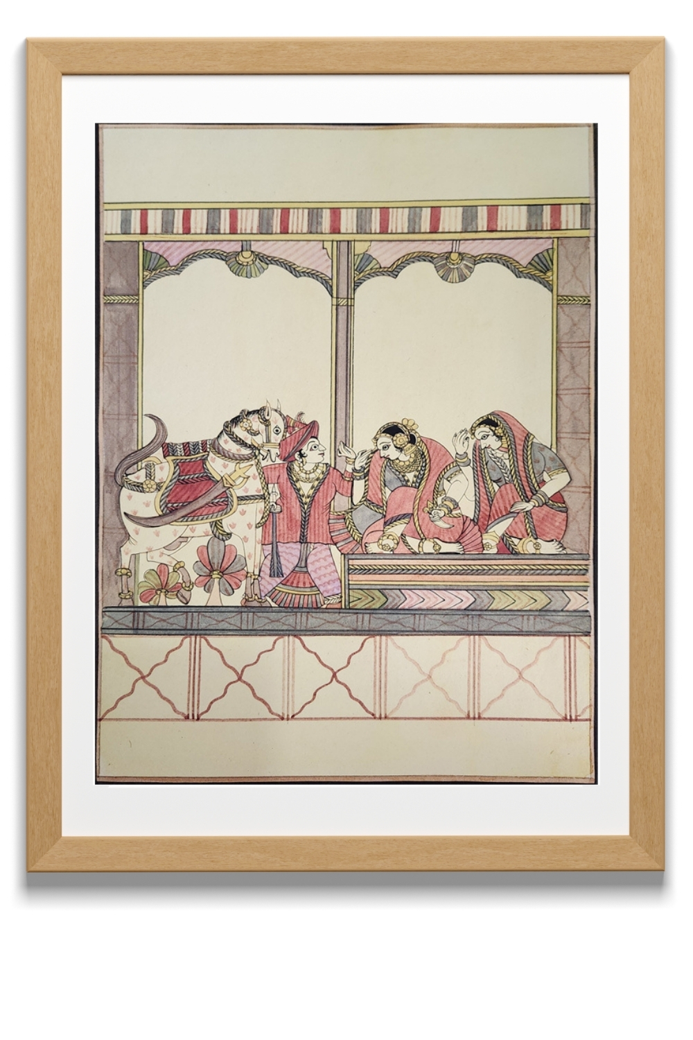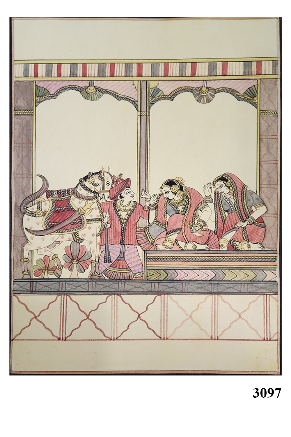 The use of muted yet vibrant colors, typical of Indian miniature paintings.