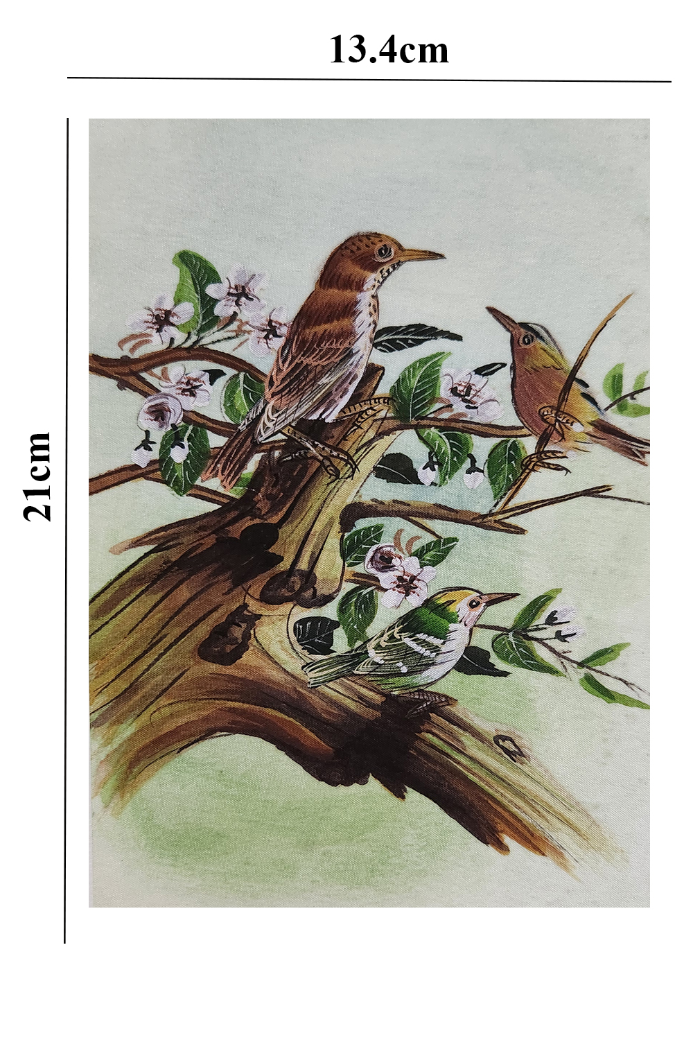 Detailed brushwork that highlights the texture of the birds' feathers and the tree bark.