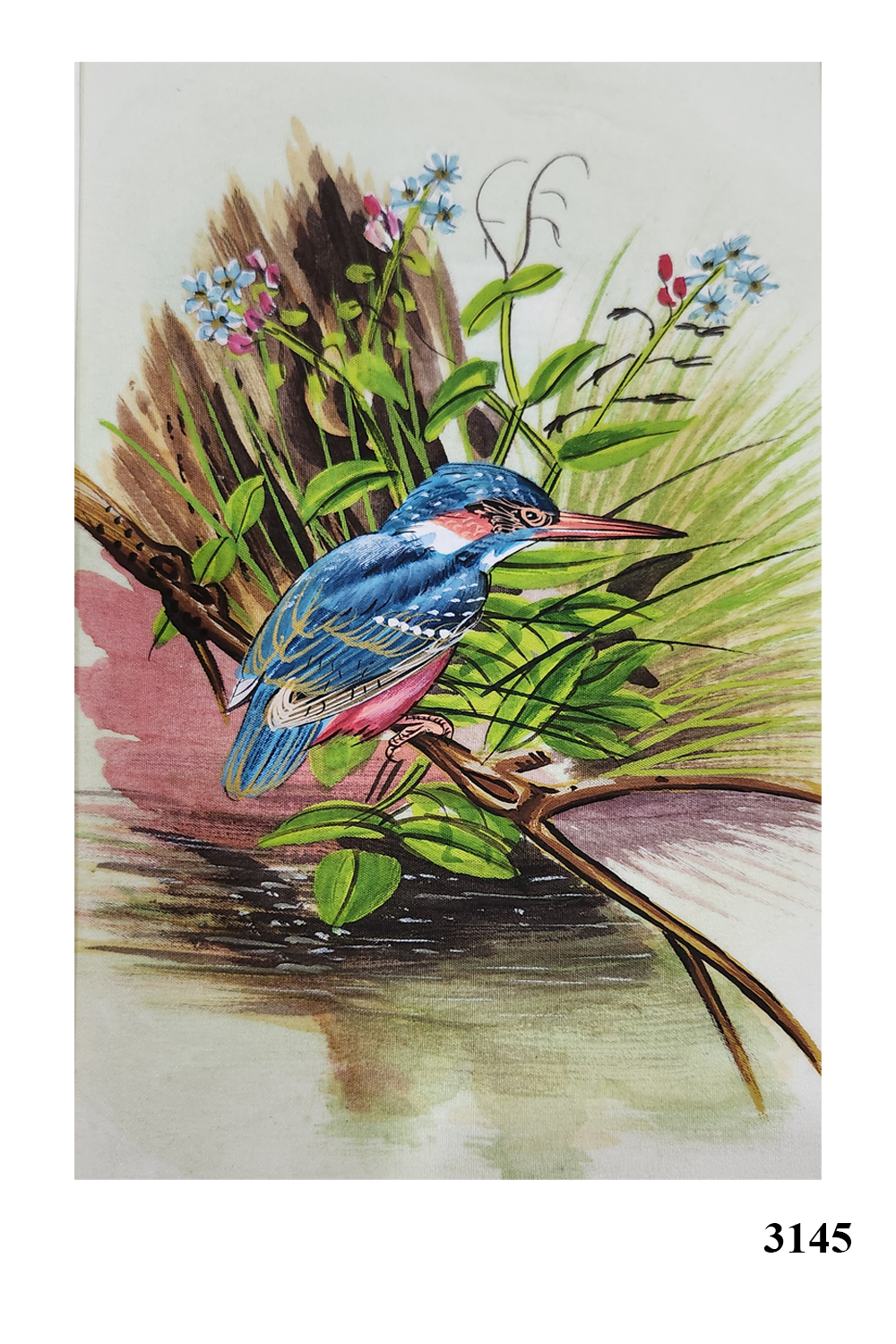 This exquisite water painting captures the serene beauty of a kingfisher in its natural habitat.