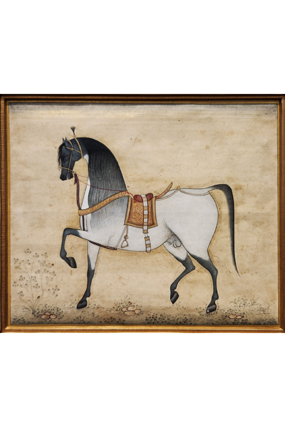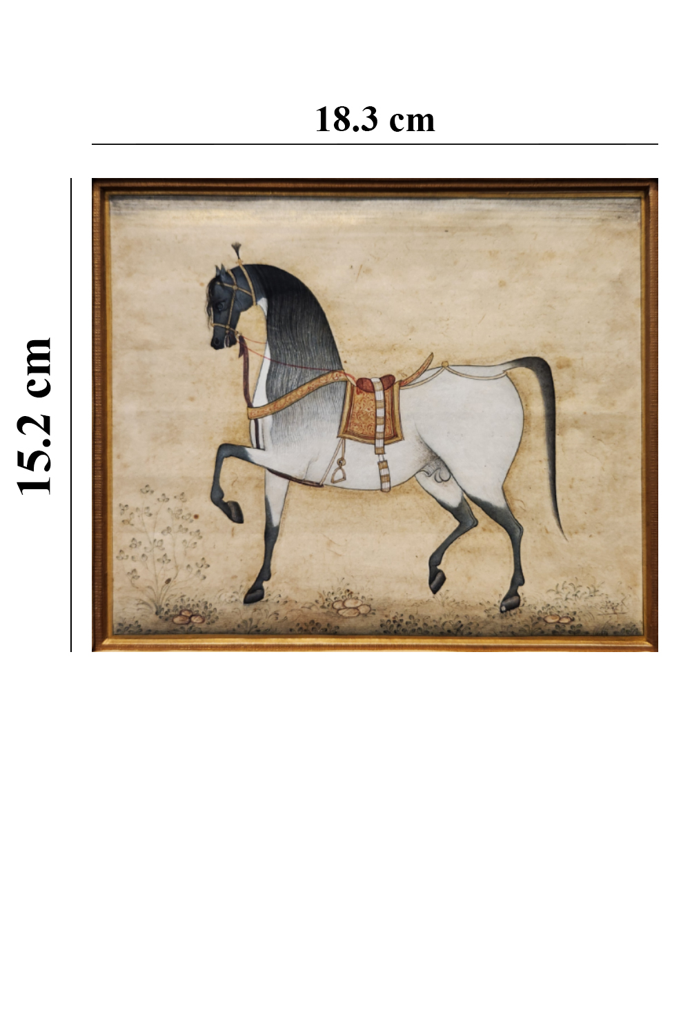 Majestic Hooves Miniature Painting captures the grace and power of a horse in exquisite detail, showcasing timeless beauty and strength.