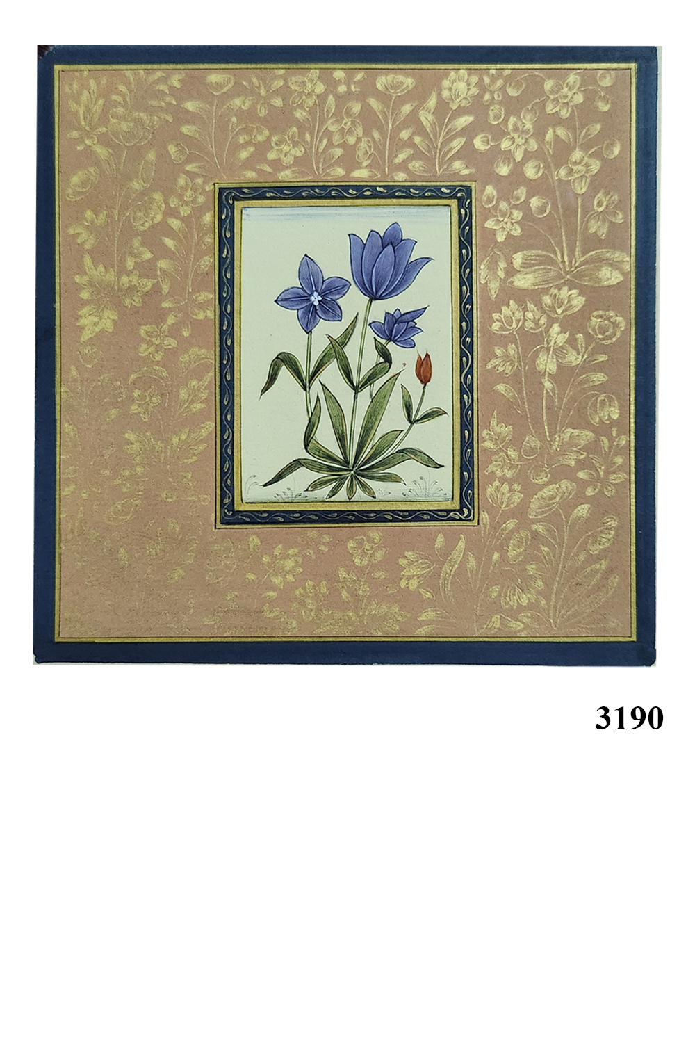 This exquisite miniature painting captures the elegance of nature with its detailed depiction of blue flowers. The painting is characterized by: