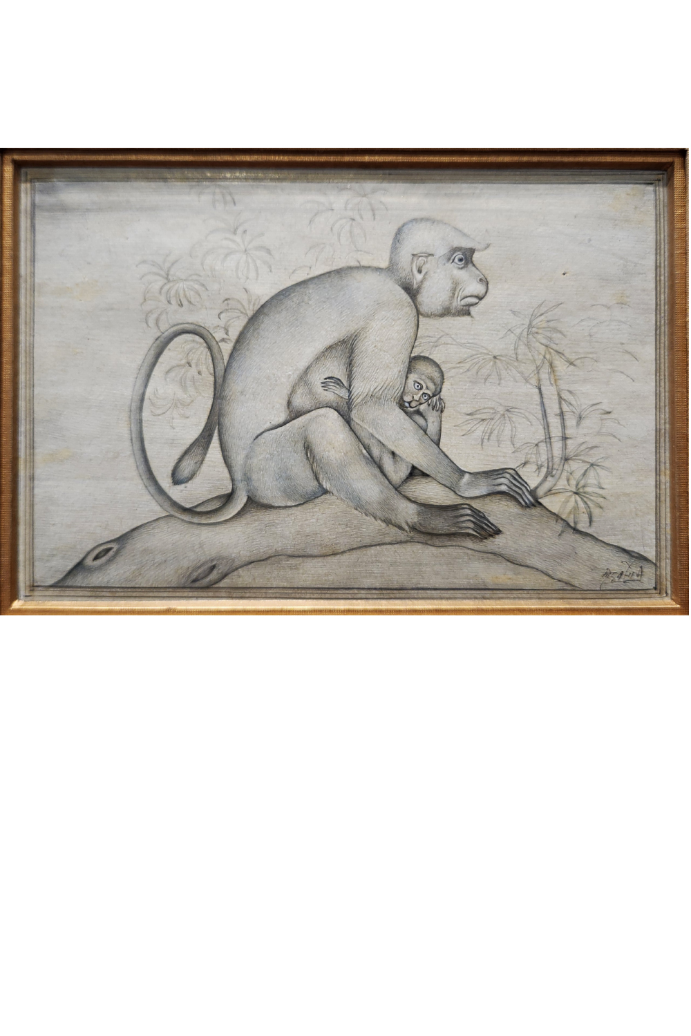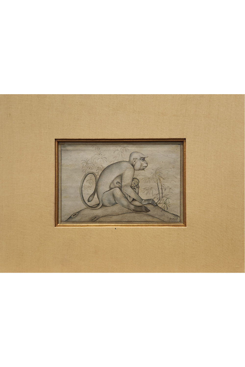 Jungle Mischief Miniature Painting captures the playful bond between a monkey and her baby in the heart of the wild.