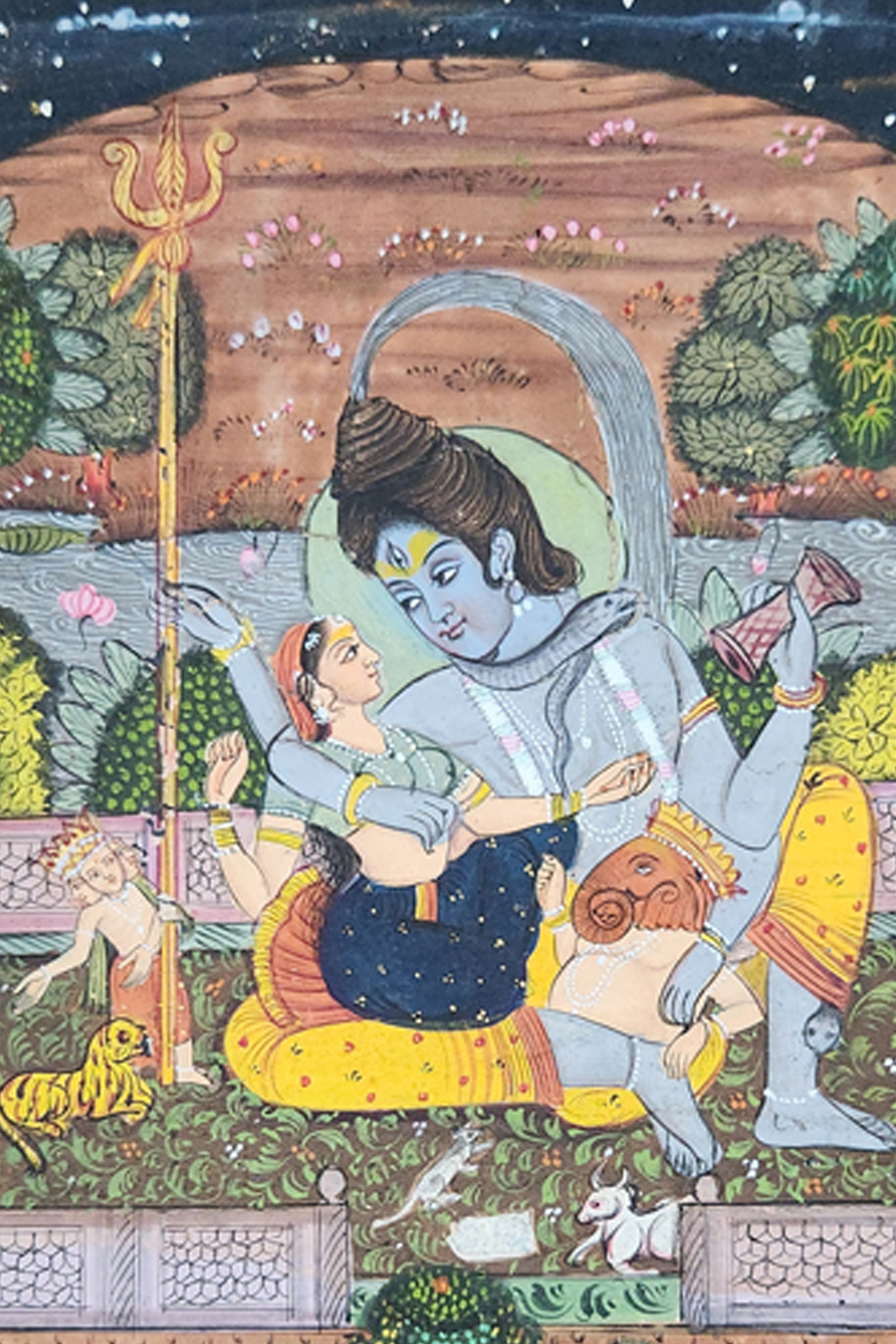 Traditional Indian miniature painting inspired by divine Hindu iconography