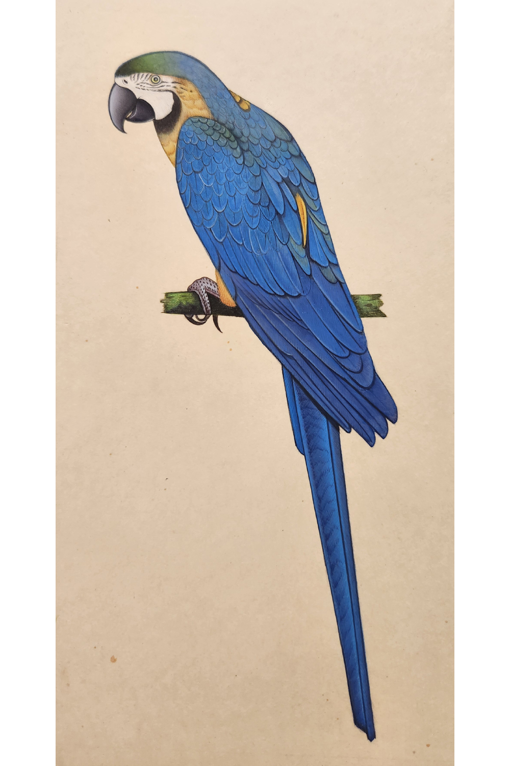 The Aqua Dream Miniature Painting features a captivating blue parrot set against a dreamy, serene backdrop. This delicate artwork highlights the intricate details of the parrot's feathers, creating a sense of ethereal beauty. Perfect for bringing a touch of tranquility and vibrant color to any room, it combines exquisite craftsmanship with a soothing color palette to enhance your space's aesthetic.