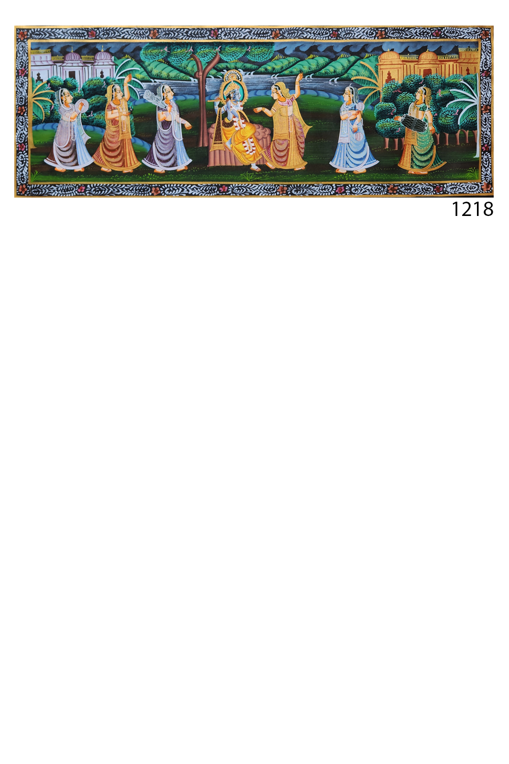 Procession of Valor celebrates the grandeur of India’s royal traditions through a singular, dignified elephant rendered in vertical composition. Adorned in embroidered textiles, gleaming headpieces, and ceremonial ornaments, the elephant stands with poise and power, capturing the essence of regal grace. The artwork, executed on fine silk with original mineral pigments, reveals extraordinary depth and luminosity, infusing each motif and brushstroke with warmth and reverence. Framed visually by an elegant border featuring floral and geometric patterns, the painting evokes movement, ritual, and symbolism. Designed for vertical spaces, this piece becomes a refined window into India’s artistic legacy.