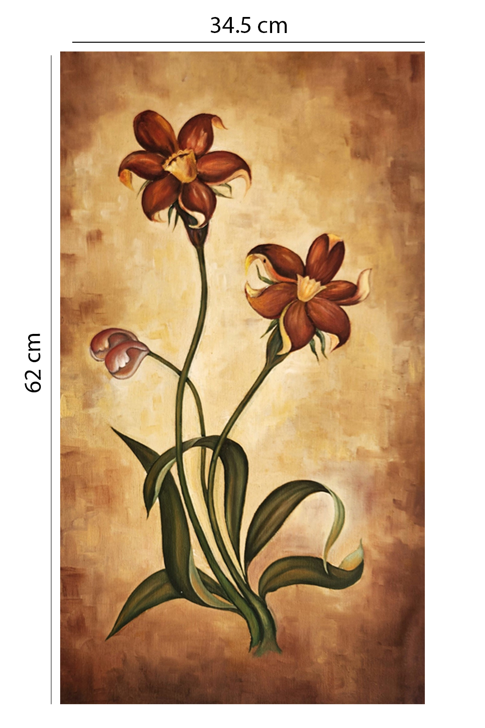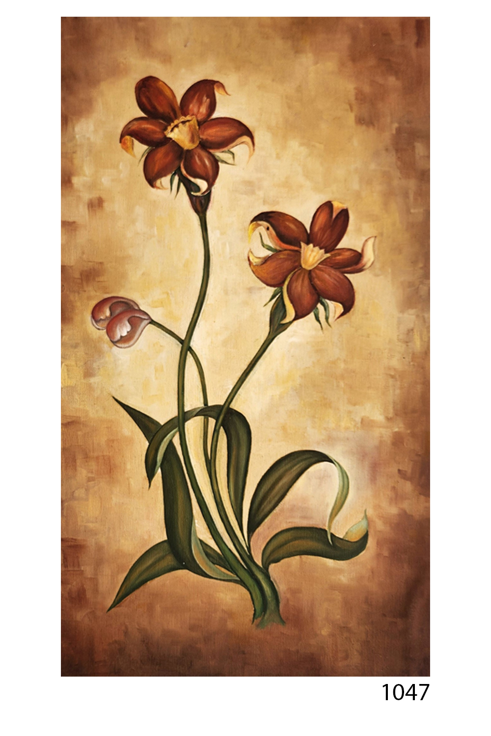 “Dharti Ke Rang” is a hand-painted canvas that celebrates the grounded beauty of flora through a warm, textured composition. Two stylized flowers with reddish-brown petals and golden centers sway gently on curved green stems, set against a gradient background of earthy beige and brown. The artwork evokes a sense of movement and quiet strength, painted entirely with original mineral colors that lend depth, richness, and timeless authenticity. Ideal for curated interiors, poetic campaign visuals, or collectors seeking tactile elegance, this piece reflects the harmony between nature’s simplicity and artistic precision.