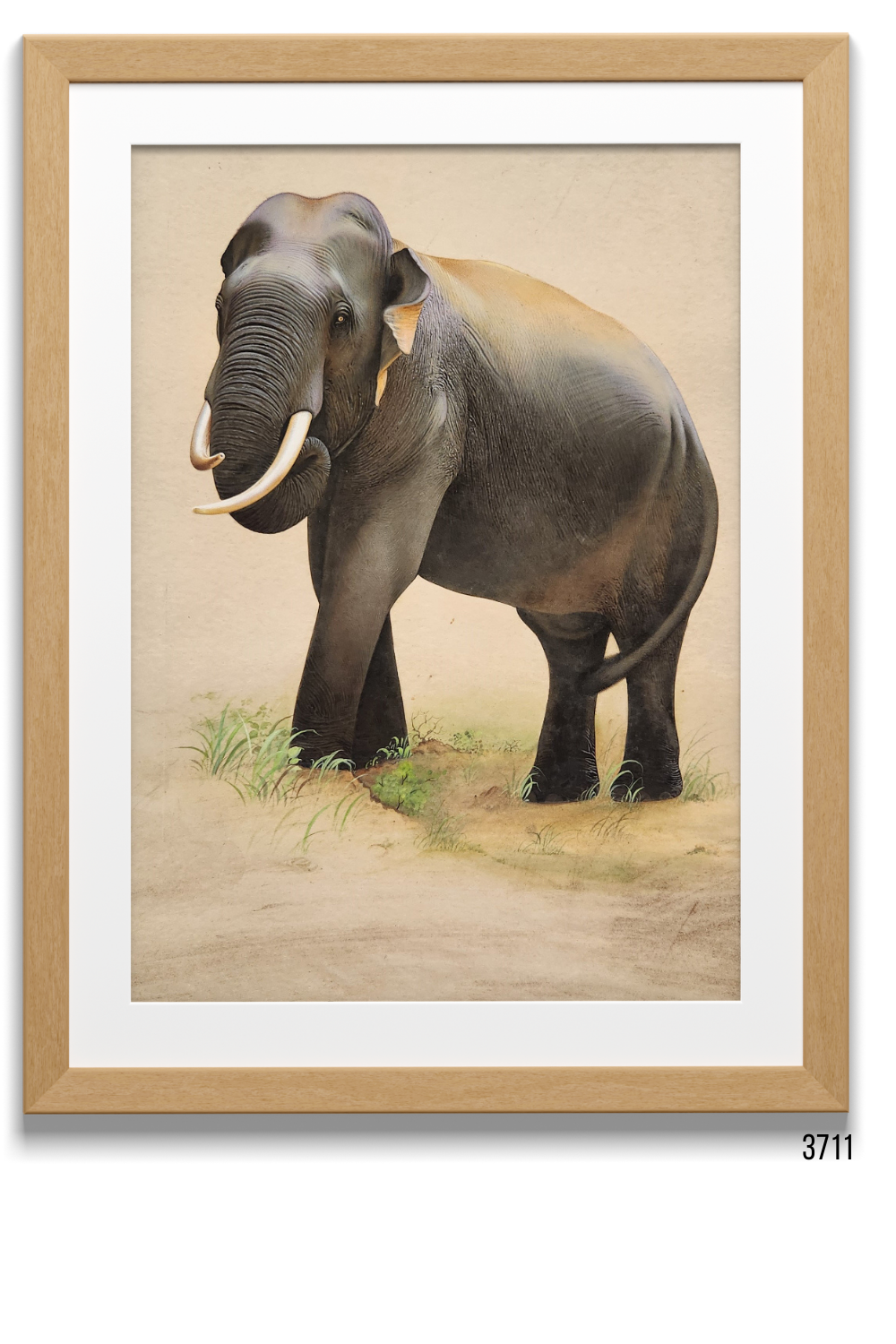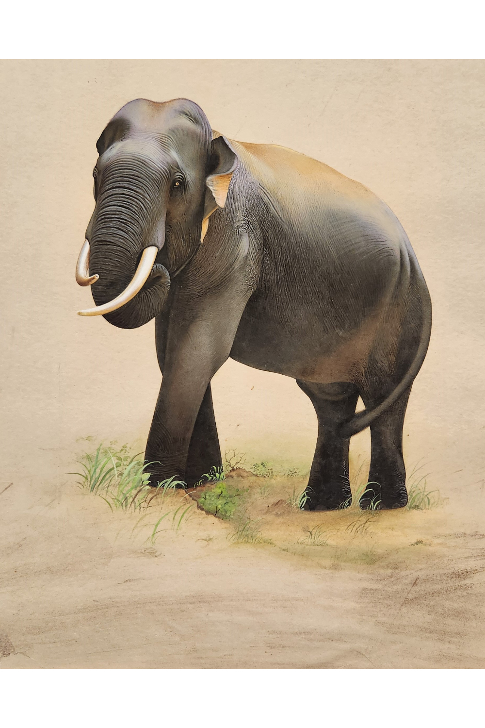 The Graceful Giant Miniature Painting captures the majestic beauty of an elephant with exceptional artistry and detail. This hand-painted piece showcases the grandeur of the elephant in a refined and elegant manner, using soft, harmonious colors that enhance its natural grace. Crafted on high-quality canvas, this artwork is designed to bring a touch of sophistication and beauty to any space. Its vertical orientation makes it an ideal choice for narrow wall areas, while its compact size allows it to fit seamlessly into various decor styles. Perfect for art lovers and collectors, this painting adds a distinguished and serene element to living rooms, bedrooms, or study areas.